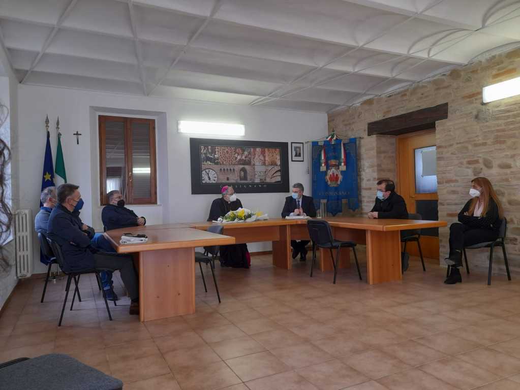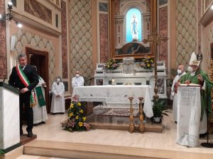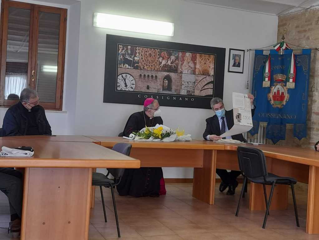 Presente a Messa anche il sindaco di Cossignano, Roberto Luciani, il quale, prima della benedizione, ha preso la parola: “È la prima volta che vivo in maniera così intensa una visita pastorale. Nell’incontro di Sabato con il vescovo in Municipio, abbiamo parlato di un concetto altissimo, del reciproco riconoscimento e di come una buona collaborazione faccia crescere la comunità. Abbiamo anche detto della crisi delle vocazioni, ma noi non veniamo a Messa per il sacerdote o per il vescovo, bensì per la salvezza della nostra anima, che avviene sì nell’aldilà, ma che passa anche per questa terra, nel quotidiano, applicando il reciproco riconoscimento, il perdono, l’amore. La visita del vescovo perciò è stata una grande occasione di arricchimento personale e anche della comunità che rappresento. Farò tesoro delle sue parole che ci hanno incoraggiato ed ispirato.”