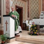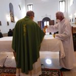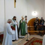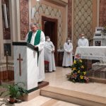 Queste le parole con cui il vescovo Bresciani, prendendo spunto dalla Parola di Dio, ha salutato le due comunità durante l’omelia: “Ogni volta che andiamo a Messa dobbiamo chiederci: Che cosa mi ispira oggi la Parola di Dio? Il Signore, infatti, non ci parla di qualcosa di astratto, bensì vuole che viviamo nel nostro mondo, con le sue contraddizioni e i suoi limiti, vuole che viviamo meglio la nostra quotidianità. Oggi il Vangelo ci dà un’indicazione su come possiamo comportarci quando nella nostra vita quando incontriamo il male. Finché le cose vanno bene, siamo tutti bravi; il problema arriva quando sperimentiamo il male nelle sue varie forme. Come ci comportiamo? Come rispondiamo al male? C’è una via d’uscita al male che c’è dentro di me, al male che c’è tra di noi, al male che c’è nel mondo? L’invidia di Saul verso Davide e il desiderio di ucciderlo sono sentimenti che fanno parte del male. Come Davide supera il male? Davide risponde al male con il bene e si dimostra degno di governare, di essere all’altezza del suo ruolo di re. Noi facciamo come lui oppure no? Certamente il male ci fa male; però, quando conserviamo lo spirito di vendetta, facciamo in modo che il male dell’altro si impossessi di noi. Il bene ci riconcilia con noi stessi; il male, invece, spacca le famiglie, le relazioni, le comunità, le chiese. Davide ci insegna come superare il male. Lo stesso fa Gesù, che muore in pace, perdonando chi lo ha ucciso. Davide, come Gesù, ci insegna che bisogna spezzare le catene del male. E questo è un insegnamento che vale per tutti, non solo per i cristiani, ma per tutta l’umanità. Dobbiamo insegnare i nostri giovani a perdonare. Come possono tenere insieme le amicizie i ragazzi, se non conoscono il perdono? Come possono due sposi tenere insieme i matrimoni, se non conoscono il perdono? In quest’ottica perdonare non significa ‘chiudere un occhio’, bensì significa ‘io non ti restituisco il male per il male ricevuto’. Questo significa l’espressione ‘Ama il tuo nemico’. Il verbo amare non indica il sentimento d’amore, bensì rappresenta il bene che facciamo. Se non fosse così, quando il sentimento non c’è più, che succederebbe? Ecco allora la regola d’oro per i rapporti umani: amare significa fare del bene. Noi cristiani non siamo solo ascoltatori della Parola di Dio, siamo soprattutto imitatori di Gesù, quindi la Sua Parola dobbiamo metterla in pratica. Non a caso la Chiesa ci fa iniziare la Messa con la richiesta di perdono, perché ci insegna che, se vogliamo essere una comunità che celebra, dobbiamo cominciare da lì, dobbiamo stare in pace con tutti, dobbiamo partire dal riconoscerci prima di tutto peccatori e sentirci perdonati, perché abbiamo sbagliato e chiediamo aiuto al Signore per essere perdonati. Solo dopo questo, possiamo diventare una comunità viva, che non è muta, bensì canta. Vedete, il Signore nel Vangelo non fa chiacchiere, ma ci parla di questioni vere e profonde, come oggi. Dopo l’ascolto della Parola e le successive riflessioni, sappiamo che facciamo fatica a perdonare, ma sappiamo anche che la forza di Dio ci dà la carica per tornare nelle famiglie e nelle comunità ed essere segno incredibile della novità di Cristo che opera nel mondo.”