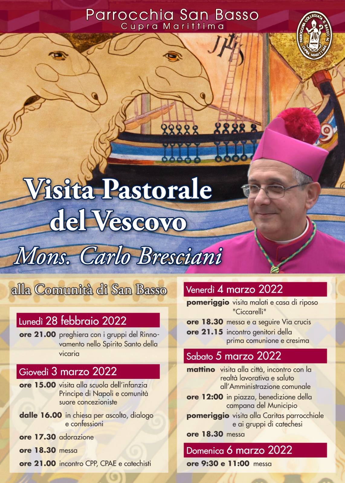 CUPRA MARITTIMA – Si aprirà Giovedì 3 Marzo, alle ore 21:00, la visita pastorale del Vescovo Carlo Bresciani nella Parrocchia San Basso di Cupra Marittima.
