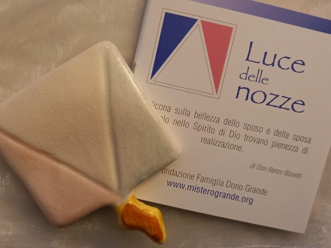In ricordo di questa giornata il Vescovo Bresciani ha donato, ad ogni coppia, una calamita che raffigura la ‘Luce delle nozze’, “un’icona sulla bellezza dello sposo e della sposa che solo nello Spirito di Dio trovano pienezza di realizzazione” di Don Renzo Bonetti, Fondazione Famiglia Dono Grande.