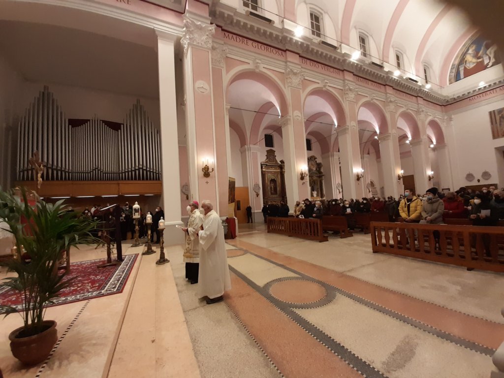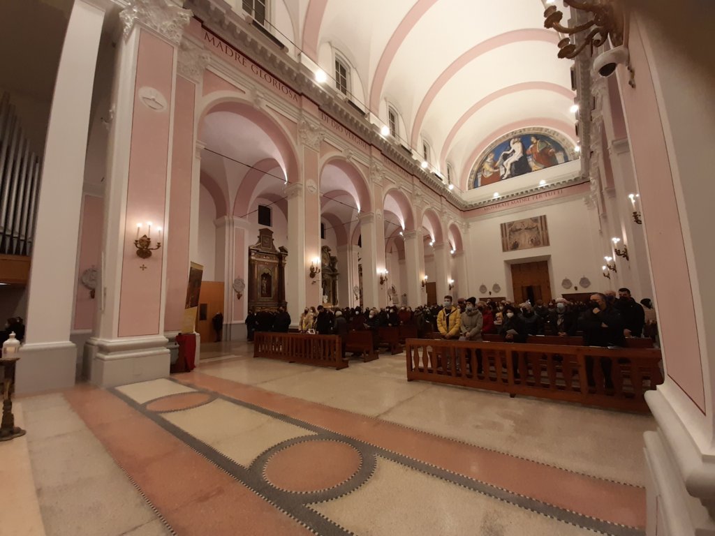 “Noi allora – ha proseguito il vescovo Carlo – preghiamo per coloro che stanno difendendo a caro prezzo la loro libertà. Ma, al tempo stesso, preghiamo anche per gli oppressori, non perché li riteniamo dalla parte giusta, ma affinché si convertano. Preghiamo per i feriti, tutti, perché ci sono mamme che piangono da una parte e dall’altra. Dunque ci chiediamo: ‘Cosa possiamo fare noi?’ Noi non possiamo fermare la guerra, però possiamo lenire – per quanto possibile – la sofferenza di chi arriverà da noi, dei rifugiati, dei profughi. È lodevole e commovente constatare la solidarietà che è scattata in questi giorni. Certamente è poco quello che riusciamo a fare e ci sentiamo impotenti nel non poter cambiare i cuori. Ma anche se non possiamo cambiare degli altri, sicuramente possiamo cambiare noi stessi. La guerra è l’incarnazione del male e si genera quando abbiamo voglia di sopraffazione, di dominio o di vendetta. Togliamo allora dai nostri cuori ogni spirito del male! Cambiamo i nostri cuori e diventiamo veri operatori di pace dentro le nostre relazioni. Se non possiamo cambiare gli altri, possiamo comunque cambiare noi stessi. Allora guardiamoci con occhi diversi, senza rivalità, e costruiamo la pace ogni giorno.”