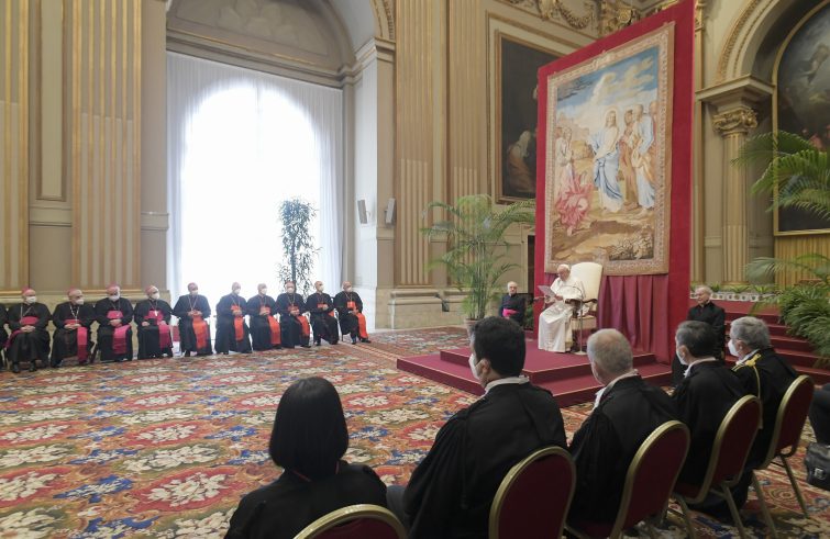 Lo ha detto Papa Francesco, presiedendo l’inaugurazione del 93° Anno giudiziario del Tribunale dello Stato della Città del Vaticano, alla presenza del presidente del Tribunale, del promotore di giustizia, degli officiali, degli avvocati, dei collaboratori del Tribunale e del presidente del Consiglio dei ministri del Governo italiano, Mario Draghi. Soffermandosi sul percorso sinodale in corso nella Chiesa, il Pontefice ha osservato: “La sinodalità interpella anche l’ambito giudiziario” e “implica anzitutto il camminare insieme”. Nelle vicende giudiziarie ciò significa che “tutti i partecipanti al processo, pur nella necessaria diversità dei ruoli e degli interessi, sono chiamati a concorrere all’accertamento della verità tramite il contraddittorio, il confronto degli argomenti e l’accurato esame delle prove”. Questo camminare insieme, ha sottolineato ancora Francesco, richiede “un esercizio di ascolto”. “Nell’attività giudiziale è richiesto ai magistrati un esercizio costante di ascolto onesto di quanto viene argomentato e dimostrato dalle parti, senza pregiudizi o precomprensioni nei loro confronti. Con la stessa disponibilità all’ascolto, che richiede tempo e pazienza, ogni membro del collegio giudicante deve aprirsi alle ragioni presentate dagli altri membri, per arrivare a un giudizio ponderato e condiviso. Ascoltare tutti”. Secondo il Papa, “un serio e paziente lavoro di discernimento rimane pertanto imprescindibile per arrivare all’esito di una sentenza giusta”.