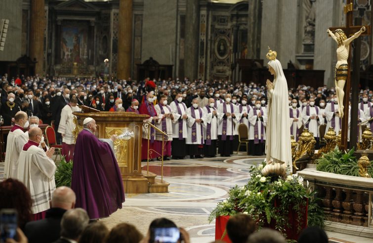“In unione con i vescovi e i fedeli del mondo, desidero solennemente portare al Cuore immacolato di Maria tutto ciò che stiamo vivendo: rinnovare a lei la consacrazione della Chiesa e dell’umanità intera e consacrare a lei, in modo particolare, il popolo ucraino e il popolo russo, che con affetto filiale la venerano come Madre”. Sono le parole con cui il Papa, nell’omelia del Rito per la Riconciliazione di più penitenti con la confessione e l’assoluzione individuale e l’Atto di consacrazione al Cuore Immacolato di Maria della Russia e dell’Ucraina, da lui presieduto nella basilica di San Pietro, ha spiegato il significato del gesto da lui scelto per invocare dalla Madonna il dono della pace. Due anni dopo la “Statio Orbis” del 27 marzo 2020, in cui in una piazza deserta e sferzata dalla pioggia aveva chiesto l’intercessione della madre di Gesù per la fine della pandemia, Bergoglio affida ancora una volta a Maria – davanti a migliaia di fedeli presenti dentro e fuori la basilica di San Pietro e in contemporanea con Fatima, dove il card. Krajeswki sta presiedendo un analogo rito – le sorti del mondo, sconvolto da un mese a questa parte da un “massacro insensato”, come lo ha definito nell’Angelus di domenica scorsa, in uno dei suoi ennesimi appelli per far cessare le ostilità tra Russia e Ucraina.