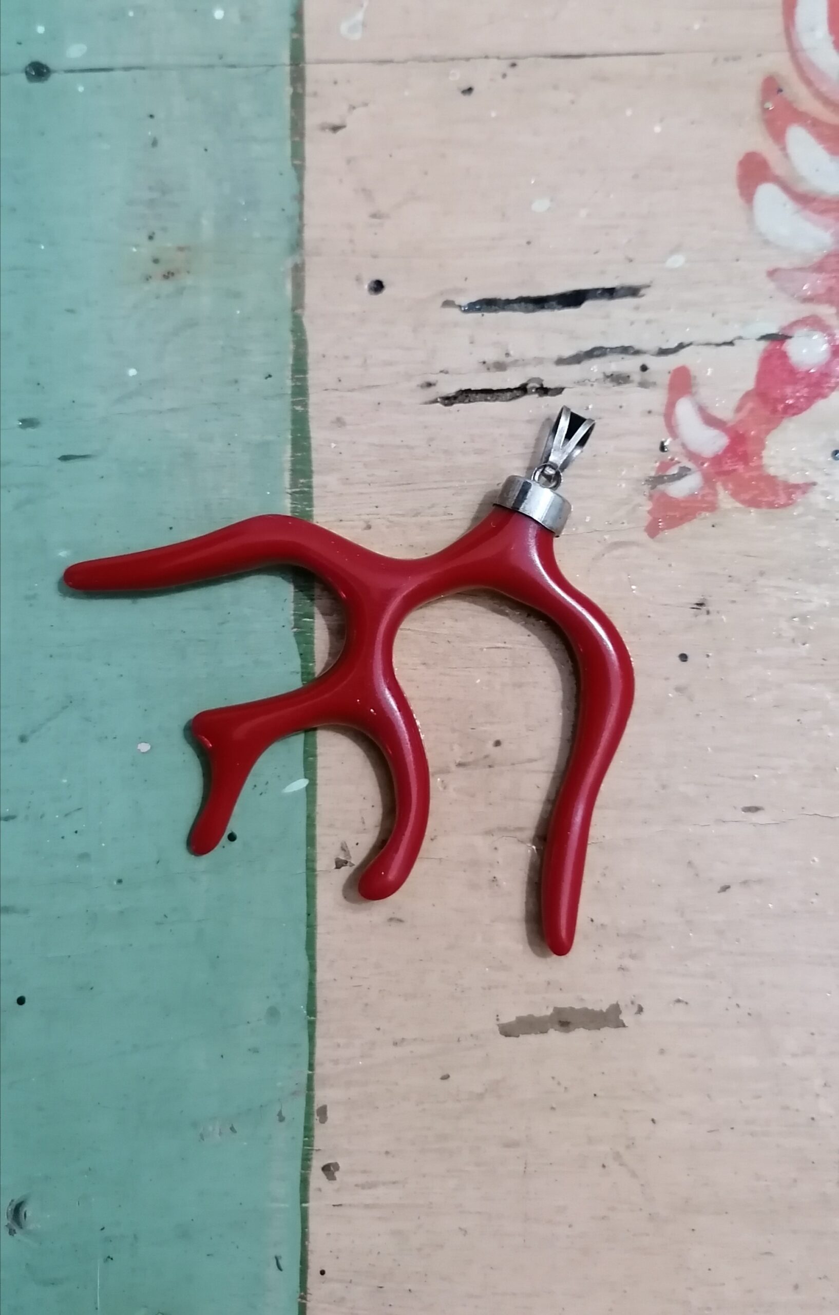 In foto : un rametto di corallo, spesso veniva infilato tra le fasce del bambino contro ogni male. Si credeva infatti che il colore rosso, simbolo del sangue corrente e della vita, scongiurasse la morte.