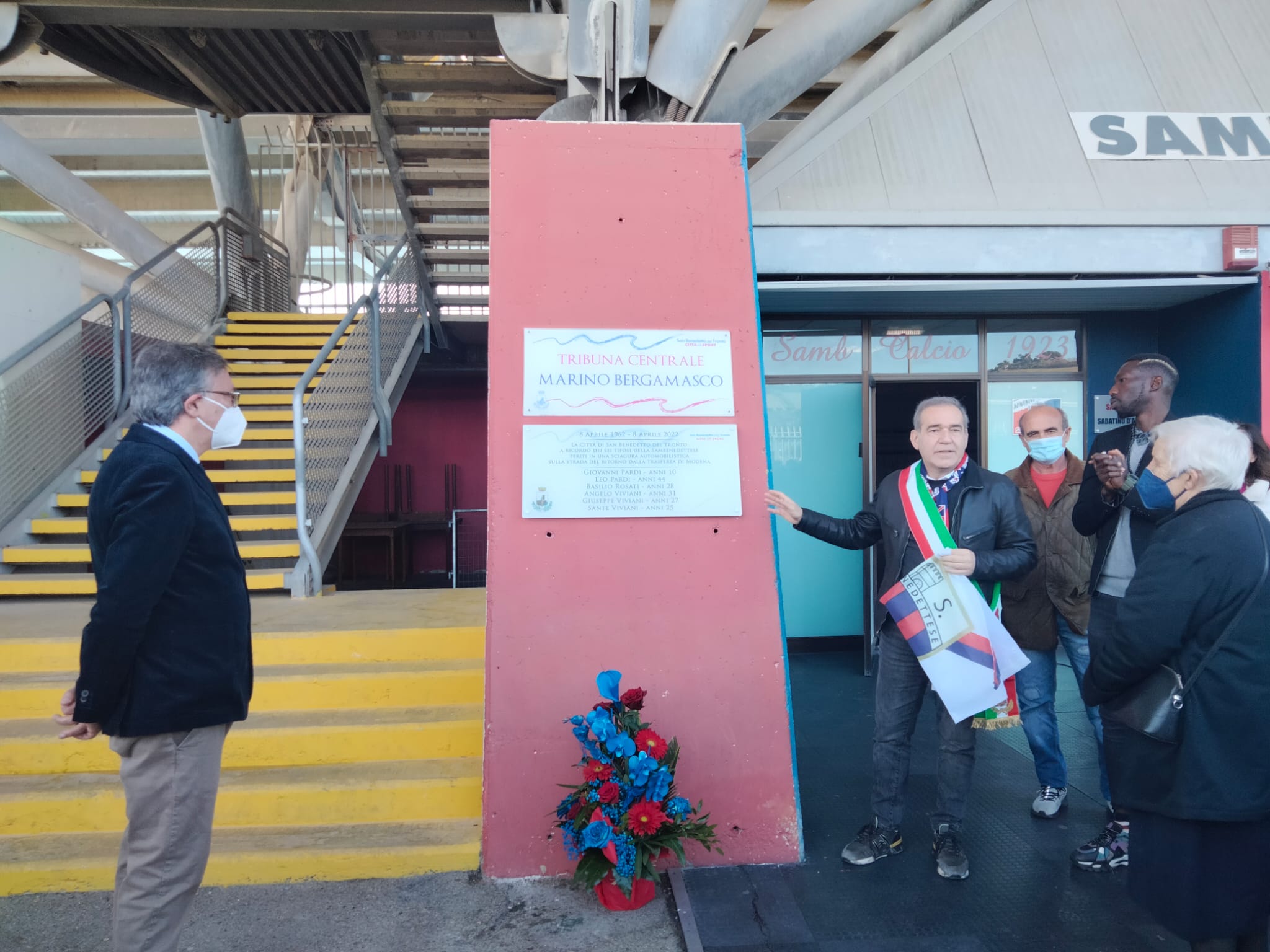 La targa commemorativa, affissa all’ingresso della tribuna centrale ovest dello stadio, è stata scoperta dal sindaco Antonio Spazzafumo alla presenza dell’assessore allo sport Cinzia Campanelli, dell’assessore alle attività produttive Laura Camaioni, dei Consiglieri comunali Luciana Barlocci, Simone De Vecchis e Domenico Novelli, del team manager Matteo Bianchini e del giocatore Ameth Fall dell’A.S. Sambenedettese, dell’ex-giocatore Paolo Beni, parte della formazione della Sambenedettese del 1962, di alcuni rappresentanti dei tifosi rossoblù e dei parenti delle vittime.
