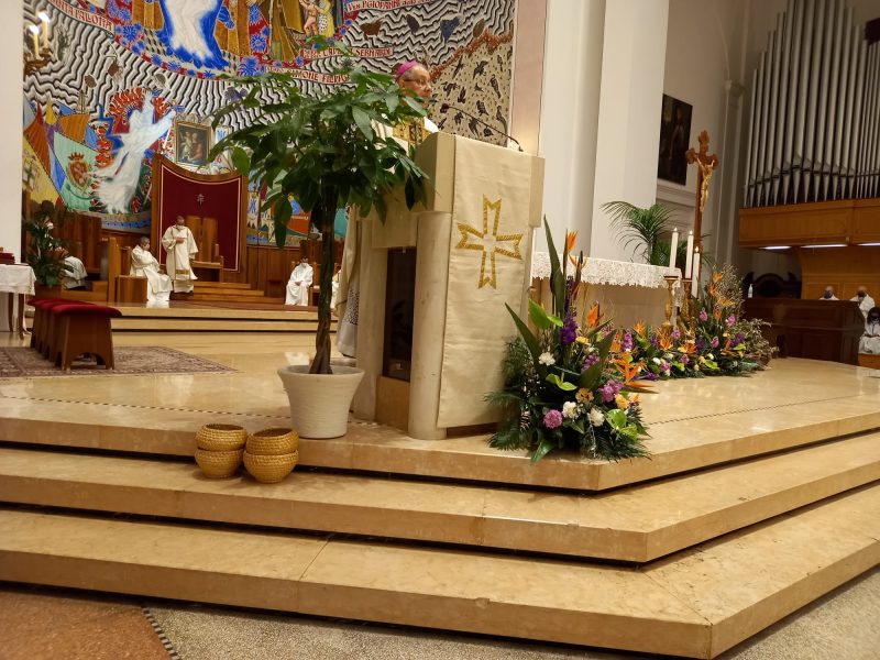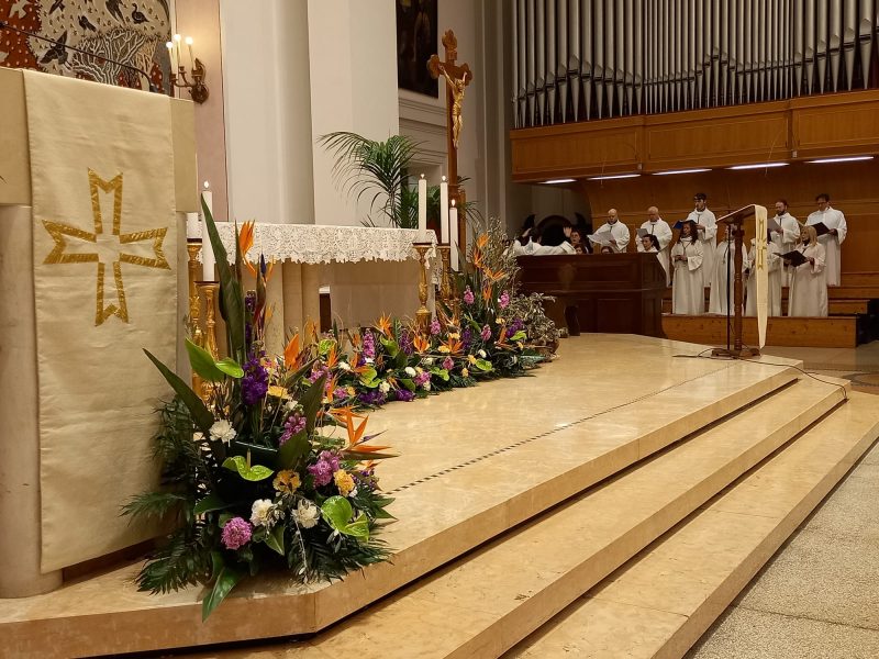 Al termine della liturgia eucaristica, il Santissimo Sacramento è stato riposto nell’altare del Sacro Cuore, dove i fedeli hanno potuto adorarlo. Come previsto dalla liturgia del Giovedì Santo, l’altare è stato spogliato.