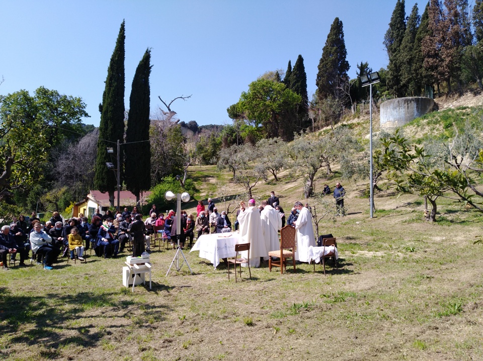 Il Signore ti da ciò di cui hai bisogno per riuscire a passare attraverso le difficoltà. Quel miracolo accaduto a san Francesco di Paola dice qualcosa di fondamentale per ciascuno di noi. La nostra devozione a san Francesco di Paola, patrono dei marinai e pescatori proprio per questo fatto, porta a dire che ci sono le barche, cerchiamo di tenerle solide, cerchiamo di tenerle forti in modo che reggano, però abbiamo bisogno di un qualcosa di più, questo qualcosa di più soltanto Dio ce lo può dare. La devozione dei pescatori a san Francesco di Paola viene da qui, la sicurezza del navigare non si basa solo sui mezzi materiali, ma sia garantita da quella manutenzione, da quell’aiuto che viene dal Signore e che invochiamo attraverso l’intercessione di san Francesco di Paola, è quello che vogliamo fare anche questa mattina in questo bellissimo luogo, in questo bellissimo giardino sistemato davvero molto bene. Facciamo la benedizione del mare da questo bellissimo luogo, ringraziando il Signore di tutti i doni che continua a dare alla nostra vita e invocandolo perché non solo ce li ha dati, ma pure ce li conservi e ci aiuti sempre più a crescere e a raccogliere quella grazia che viene dalla risurrezione e che ci accompagni per sempre in ogni momento e ci protegga dalle difficoltà che la vita ci presenta”.