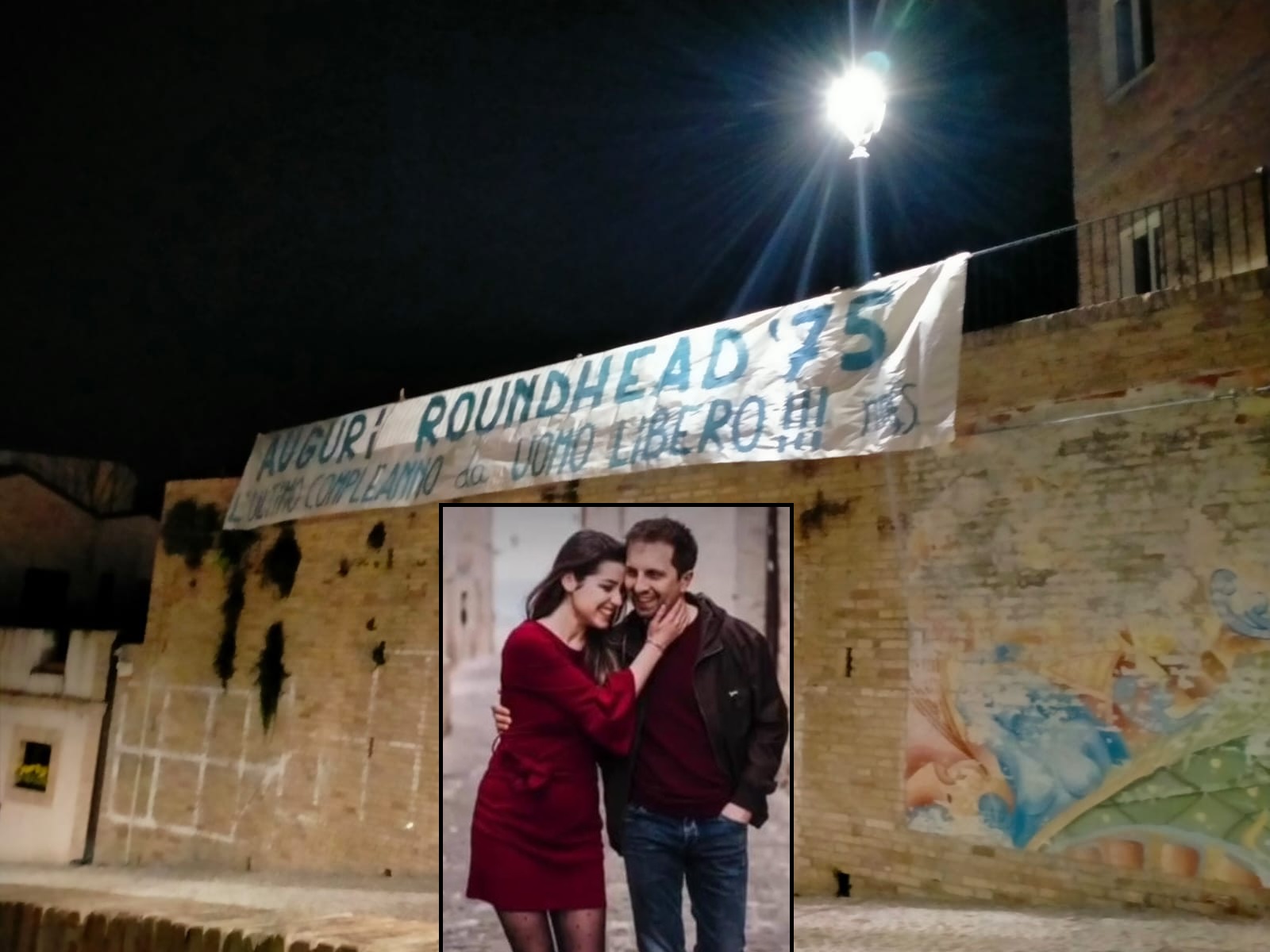 Oggi i suoi amici e le persone che gli vogliono bene, nel giorno del suo compleanno, hanno esposto uno striscione goliardico al paese alto di Grottammare, in cui fanno i loro migliori auguri a Testatonda e ricordano il grande avvenimento che si terrà il prossimo 2 giugno.