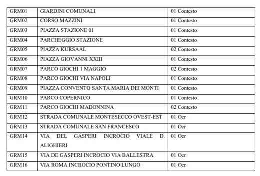 L’ampliamento prevede altri 19 punti di osservazione all’interno di 16 nuovi luoghi sotto sorveglianza, composti da aree sensibili (piazze e parchi) e strade. Ecco dove sono state localizzate e con quale tipologia di impianto: