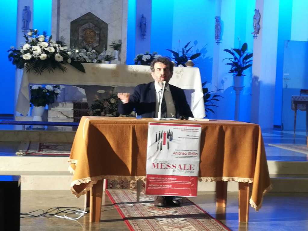 DIOCESI – Si sono conclusi ieri, presso la Chiesa San Pio X di San Benedetto del Tronto, i due incontri formativi dal titolo “Il Nuovo Messale in 30 parole”, organizzati dall’Ufficio Liturgico e dall’Ufficio Catechistico Diocesano. Il primo appuntamento, che si è svolto mercoledì 27 aprile alle ore 21:00, è stato rivolto a tutti i ministri della Liturgia: lettori, cantori, ministri della Comunione e catechisti. Il secondo, invece, avvenuto giovedì 28 aprile alle ore 10:00, è stato dedicato ai presbiteri e ai diaconi. Ospite illustre di entrambi gli appuntamenti è stato il prof. Andrea Grillo, docente di Liturgia presso il Pontificio Ateneo Sant’Anselmo in Roma e presso l’Istituto Liturgico Santa Giustina in Padova.