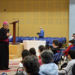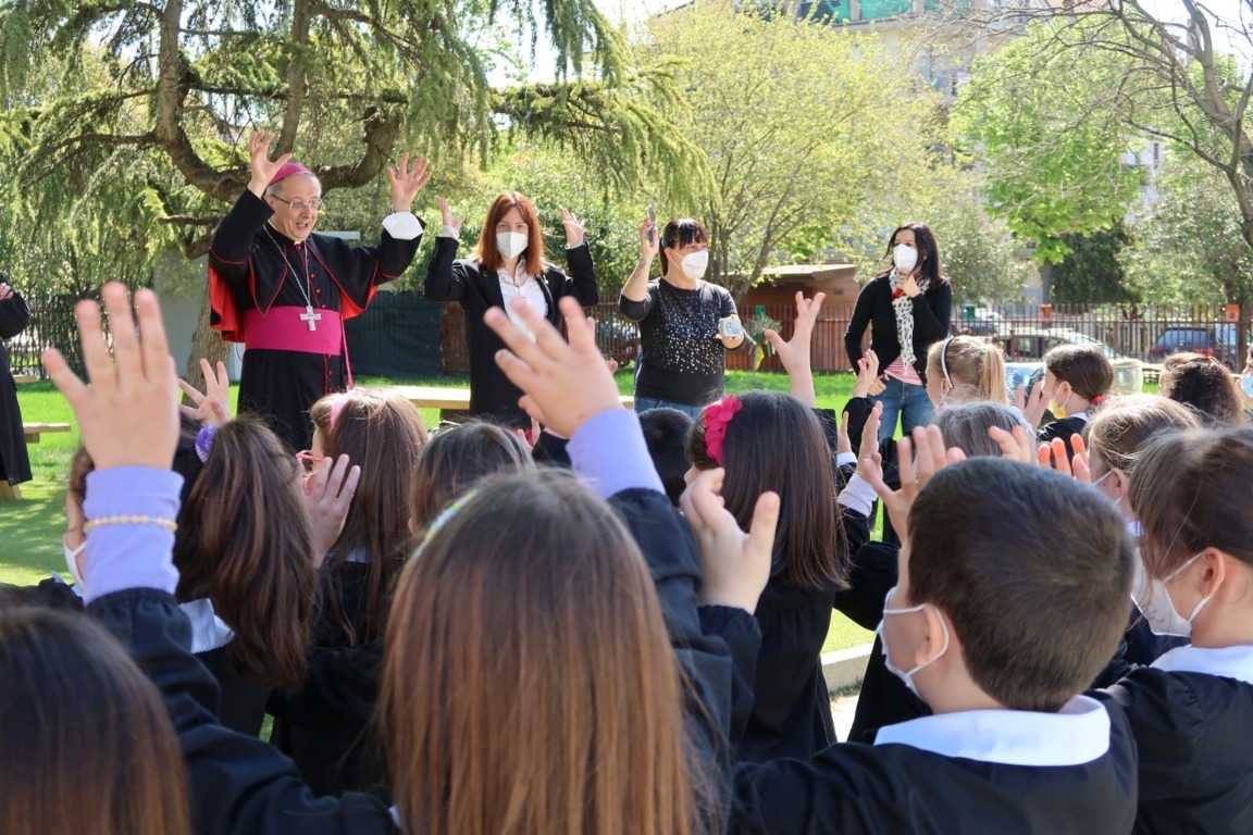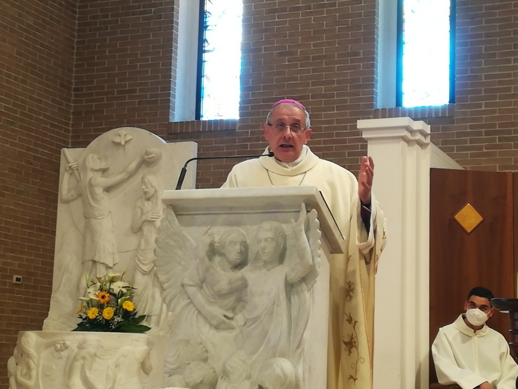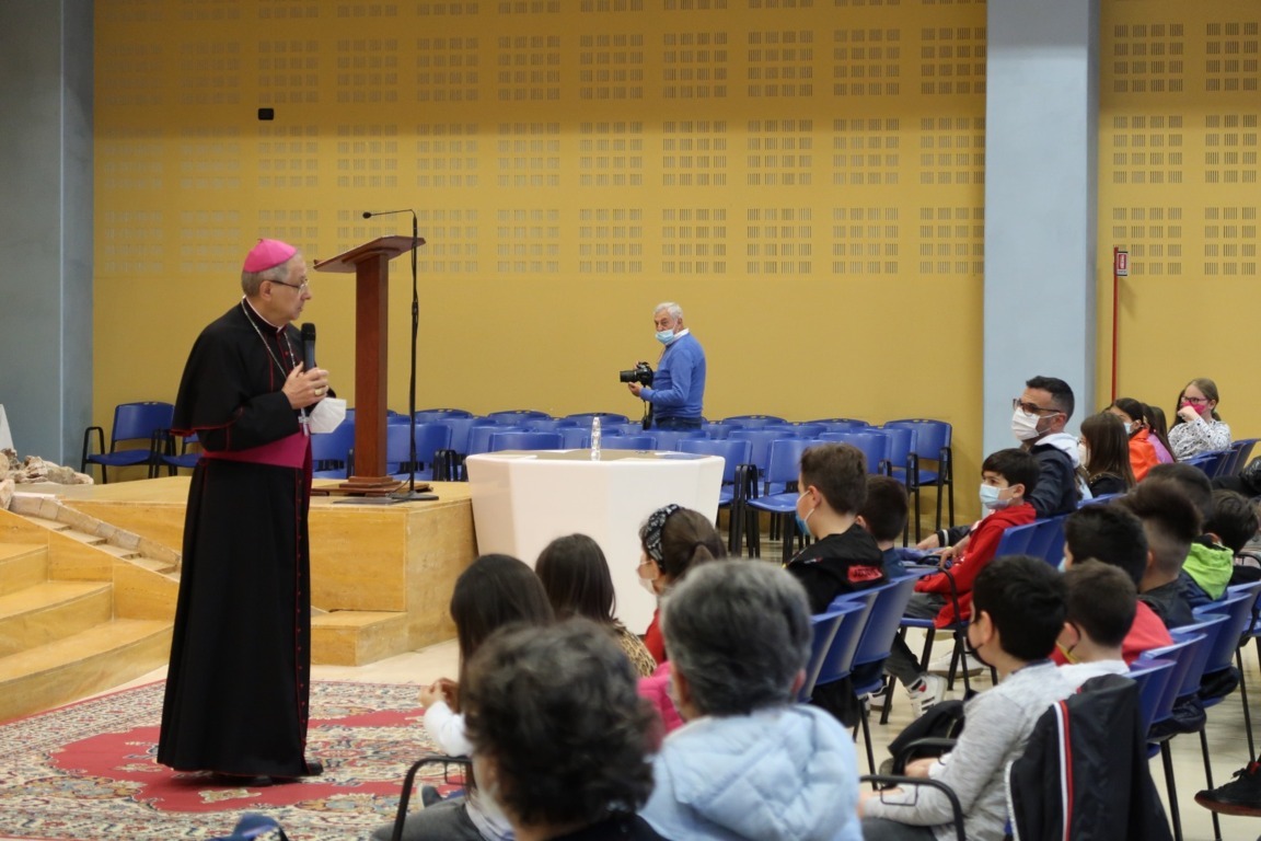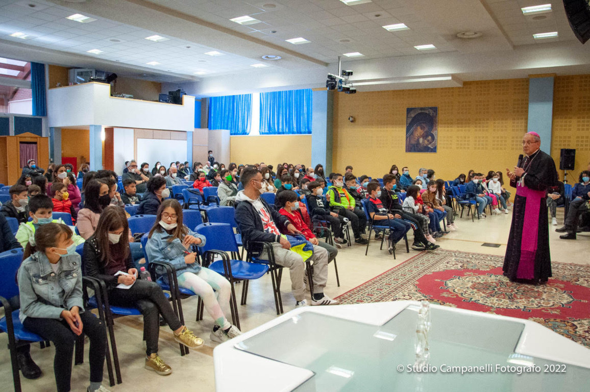 Queste le parole con cui il vescovo Bresciani, prendendo spunto dalla Parola di Dio, ha salutato la comunità: “La Parola di Dio di oggi – come del resto quella di ogni domenica – interpella tutti noi, ragazzi, giovani e adulti. In particolare oggi nella prima lettura ci troviamo in un contesto ben preciso: alcune persone hanno fatto esperienza della Resurrezione, hanno cioè visto Gesù Risorto e ne parlano, lo raccontano. Ma questo non piace a tutti. Il sommo sacerdote, infatti, non vuole che si parli di Gesù, anzi nel Vangelo c’è scritto che egli addirittura aveva proibito agli apostoli di insegnare nel nome di Gesù. Quante volte anche oggi a noi viene detto di lasciar perdere Gesù?! Magari abbiamo altre priorità, come il lavoro e gli affari. Altre volte si vuole che il cristiano stia buono, non parli, non si occupi di certe cose. Allora noi cosa dobbiamo fare? Ecco che ci vengono incontro le parole di Pietro: ‘Bisogna obbedire a Dio invece che agli uomini’. Ecco quindi cosa fare! Non devo nascondermi per timore che poi magari mi prendano in giro o mi dicano che sono bigotto oppure perché quello che dico potrebbe essere pericoloso o potrebbe farmi perdere qualche consenso. Anche Pietro rischia, rispondendo in quel modo: Gesù, infatti, è stato crocifisso, quindi anche per Pietro c’è il pericolo di poter perdere la vita; però, a differenza di qualche giorno prima, quando aveva rinnegato Gesù per ben tre volte, adesso finalmente ha il coraggio di parlare di Gesù e di rischiare. Pietro decide di prendere la Parola di Dio come fondamento per la sua vita. La stessa cosa vale per noi. Dunque cosa dice a voi, ragazzi, quel ‘devo obbedire a Dio’? Significa che non devo vergognarmi, non devo nascondermi, non devo obbedire al bullo di turno.