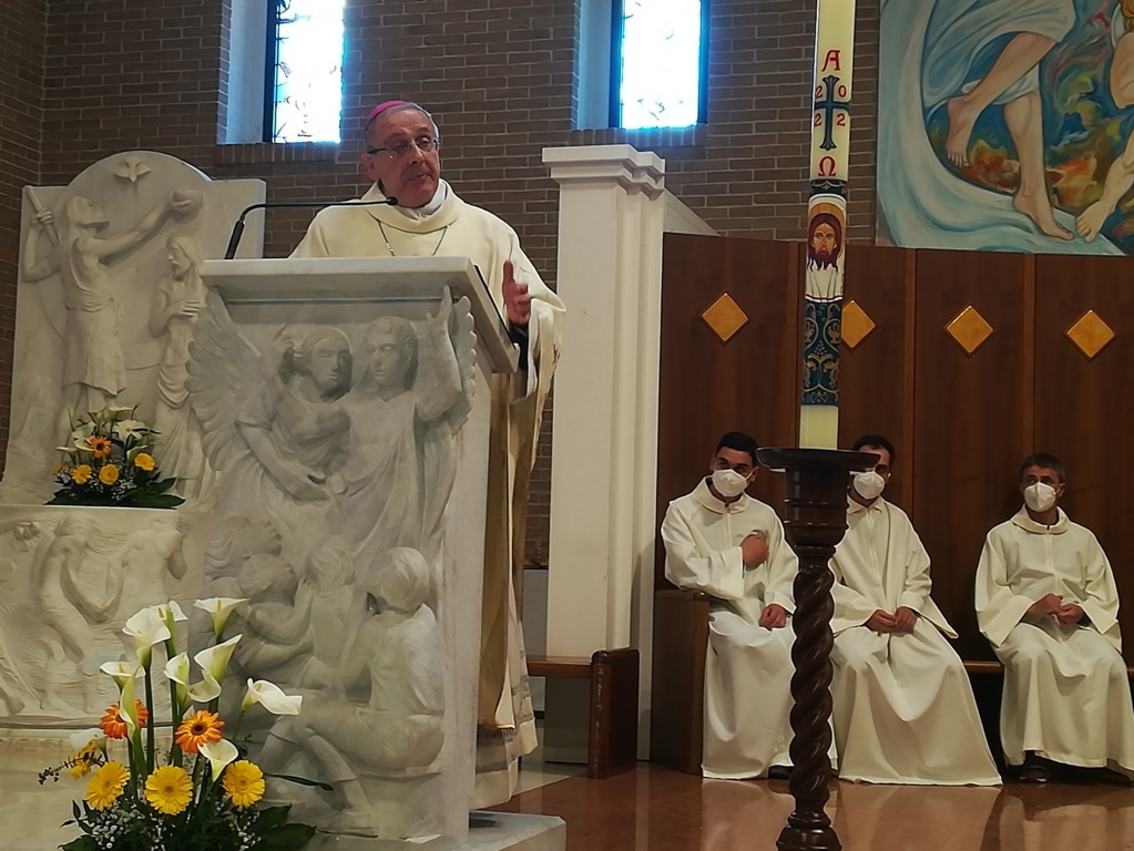 “Anche nel brano del Vangelo di oggi – ha proseguito il vescovo Carlo – troviamo tanti spunti di riflessione importanti. Siamo di nuovo di fronte ad un’esperienza di vita. Dopo la Resurrezione di Gesù i discepoli sono tornati in Galilea e hanno ripreso a fare i loro mestieri. Simon Pietro e gli altri sono pescatori esperti che non hanno bisogno di nessuno che insegni loro il lavoro. Sono andati a pesca, hanno trascorso tutta la notte a provare a tirar su dei pesci, ma non hanno preso nulla. Però, sulla Parola di Gesù, gettano di nuovo le reti e questa volta pescano in abbondanza. In altre parole, questi uomini hanno fatto un’esperienza di fallimento ed è la stessa cosa che capita anche a noi: a volte non riusciamo a portare avanti un progetto, non riusciamo nel nostro lavoro, nella nostra vita quotidiana. Il Vangelo di oggi ci dice che, anche se abbiamo sperimentato il fallimento, possiamo ancora avere una possibilità, ma – per per farlo – dobbiamo fidarci della Parola di Dio, quella Parola che oggi ci illumina e rassicura. Questo vale per noi sia come singole persone sia come comunità, come Chiesa. Questa pesca così abbondante ci dice che l’opera di Dio è più grande della nostra, anzi, che l’opera di Dio rende feconda la nostra opera. Ecco come agisce Gesù. Egli prepara ai pescatori la cena, o meglio, una parte della cena, ma non fa tutto da solo: ad un certo punto, infatti, vuole anche la collaborazione degli apostoli. Questo è un grande insegnamento per noi perché ci fa capire come agisce Dio nella nostra vita: Egli prende l’iniziativa, ma vuole che collaboriamo con Lui. La stessa cosa succede durante la Messa: noi portiamo un po’ di pane e un po’ di vino e riceviamo Pane di vita eterna e Calice di salvezza. Il Vangelo di oggi ci ricorda dunque che, per essere Chiesa, occorrono da un lato l’opera di Dio e dall’altro la nostra collaborazione: senza questa collaborazione, non c’è Chiesa. Poi, nel racconto di oggi del Vangelo, c’è un secondo momento da sottolineare, quello in cui Gesù interroga Pietro e, al di là della cena e dello stare insieme, lo riporta al fondamento. Per Gesù non è importante né la pesca né la cena in sé, bensì quello che c’è alla base, cioè l’amore. Gesù, infatti, chiede tre volte conferma a Pietro dell’amore che prova per lui: ‘Pietro, mi ami?’. Pietro risponde di sì, all’inizio in maniera più incerta, poi con maggiore consapevolezza. Ma questo amore, da solo, non basta. Gesù, infatti, gli fa una nuova richiesta: ‘Pasci le mie pecore’. Ecco dunque un grande insegnamento per noi: alla base di tutto, c’è l’amore per il Signore, il fondamento di ogni cosa; in secondo luogo, facciamo Chiesa solo se accogliamo anche questa seconda richiesta, ovvero se ci prendiamo cura di noi come comunità. Noi siamo Chiesa insieme, solo insieme. L’amore per il Signore ci porta ad incontrare il fratello. Da soli non si va da nessuna parte. Se non incontriamo il fratello, non siamo Chiesa. Il Vangelo di oggi dunque ci pone questi interrogativi: ‘In che modo formiamo comunità?’, ‘In che modo diamo testimonianza?’. ”