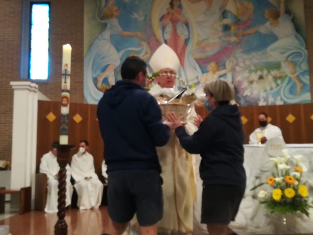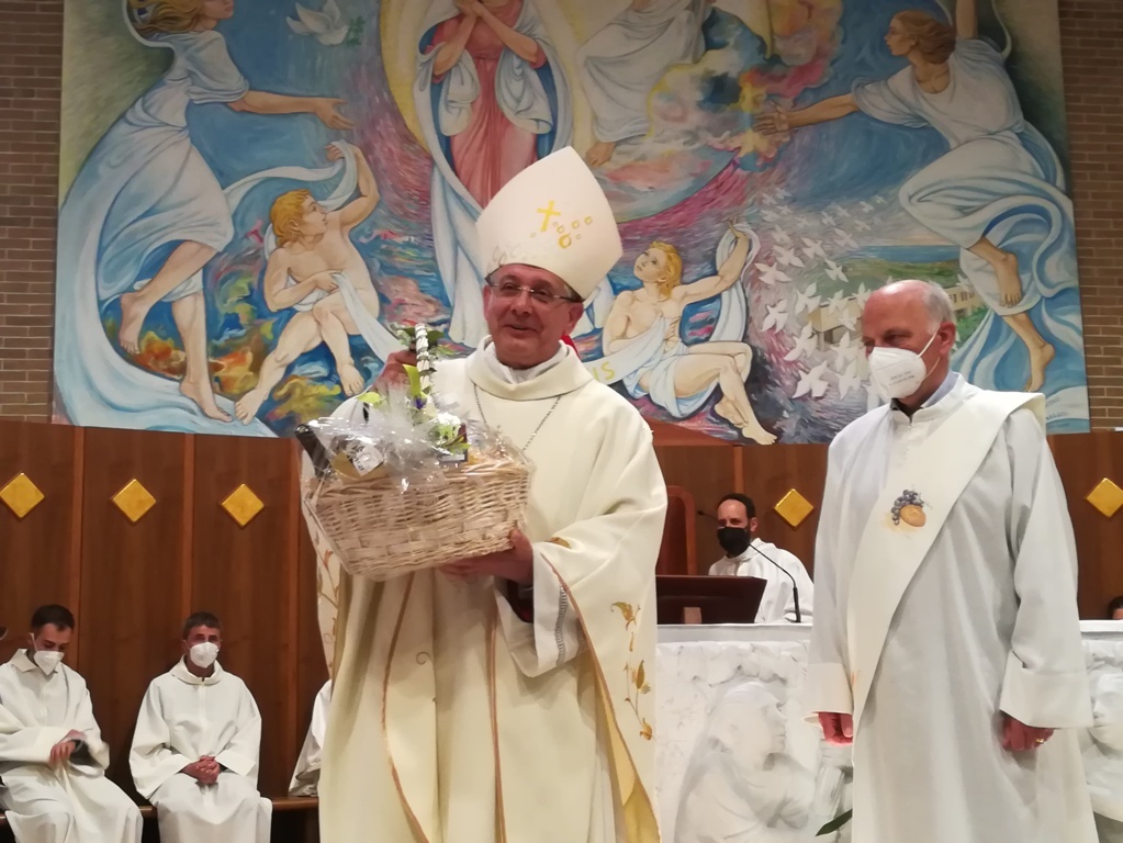 Al termine della celebrazione, Anna Calvaresi, segretaria del Consiglio Pastorale della Parrocchia Regina Pacis, e Alessandro Straccia, segretario del Consiglio Pastorale della Parrocchia Sacro Cuore di Gesù, hanno ringraziato così il vescovo Bresciani: “Siamo particolarmente grati al vescovo che, durante la visita pastorale, ha incontrato la nostra Comunità e le varie realtà del nostro territorio. Abbiamo riconosciuto l’atteggiamento di un padre che vuole incontrare i propri figli, si siede e li ascolta con semplicità e amorevolezza, cercando di capire ciò di cui hanno bisogno e ciò di cui ha bisogno la nostra giovane unità pastorale in cammino. È stato particolarmente bello e commovente vederlo in chiesa a disposizione della comunità: come la presenza di un padre buono e misericordioso che aspetta il ritorno dei figli e cerca sempre di sostenere il loro cammino. E sappiamo tutti che non è mai semplice essere un buon padre, un ruolo che porta tanta gioia ma anche tanta fatica e sofferenza; sofferenza accentuata dal periodo che stiamo vivendo con la pandemia ma anche dalle tante difficoltà che si incontrano.
