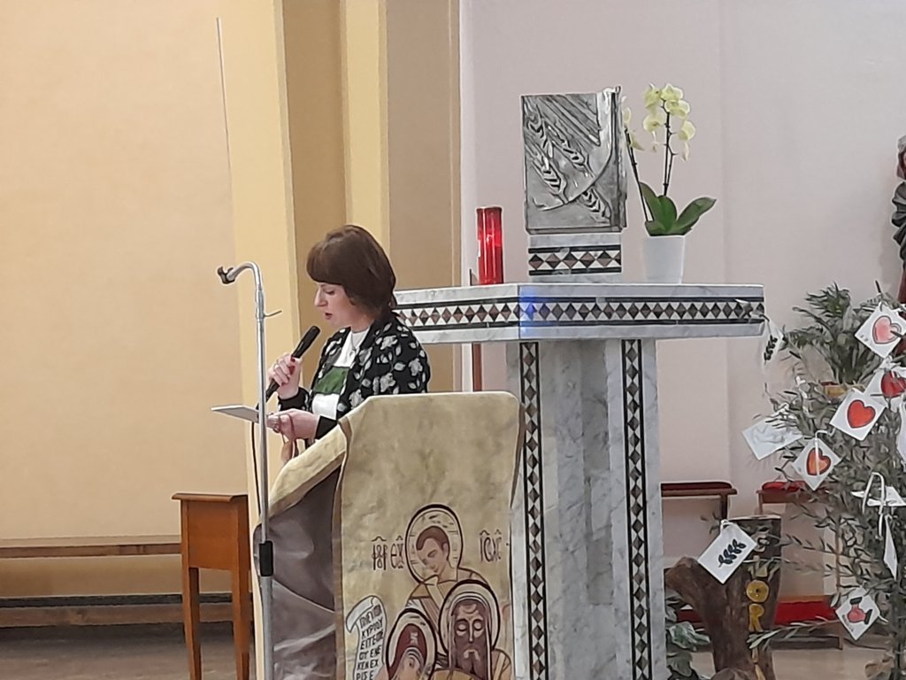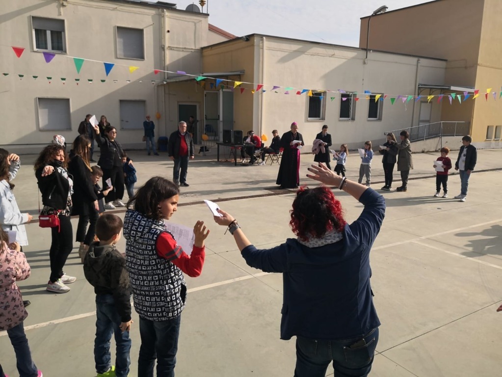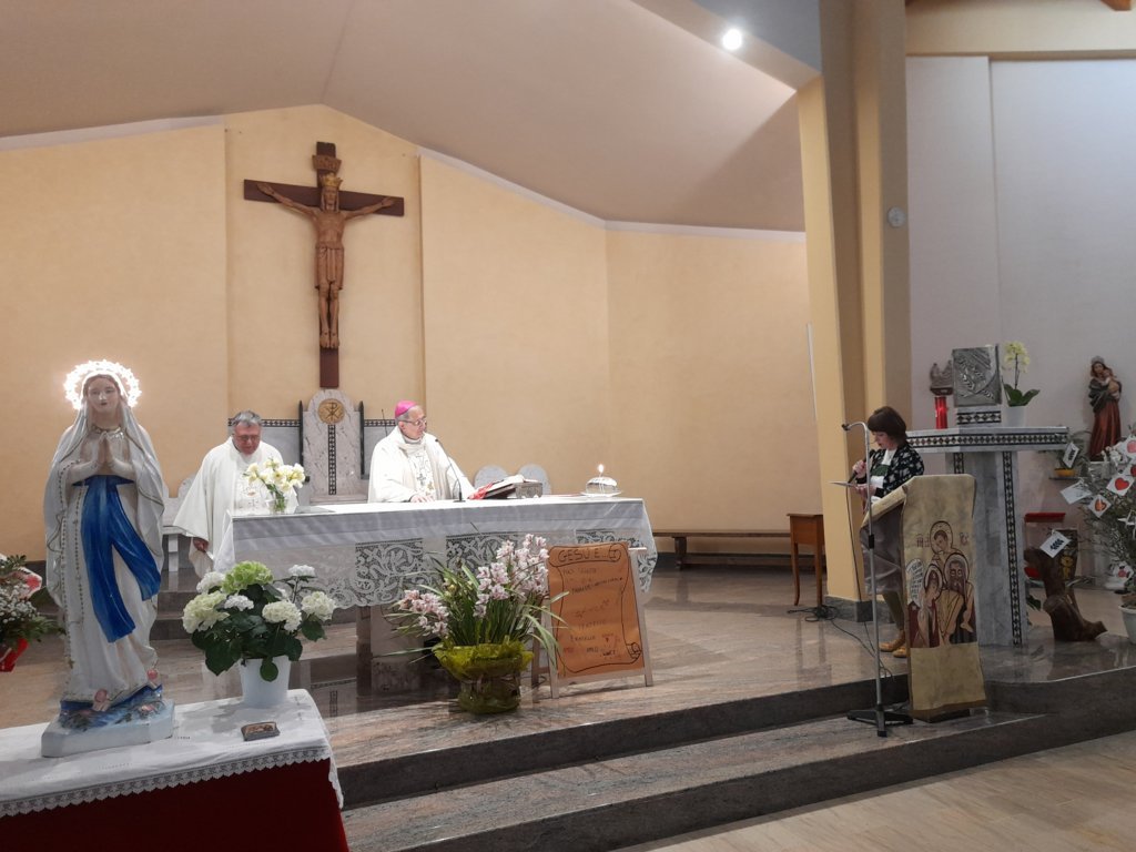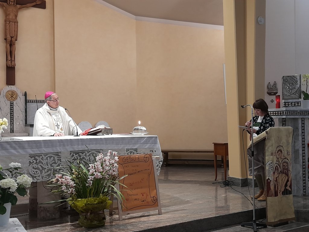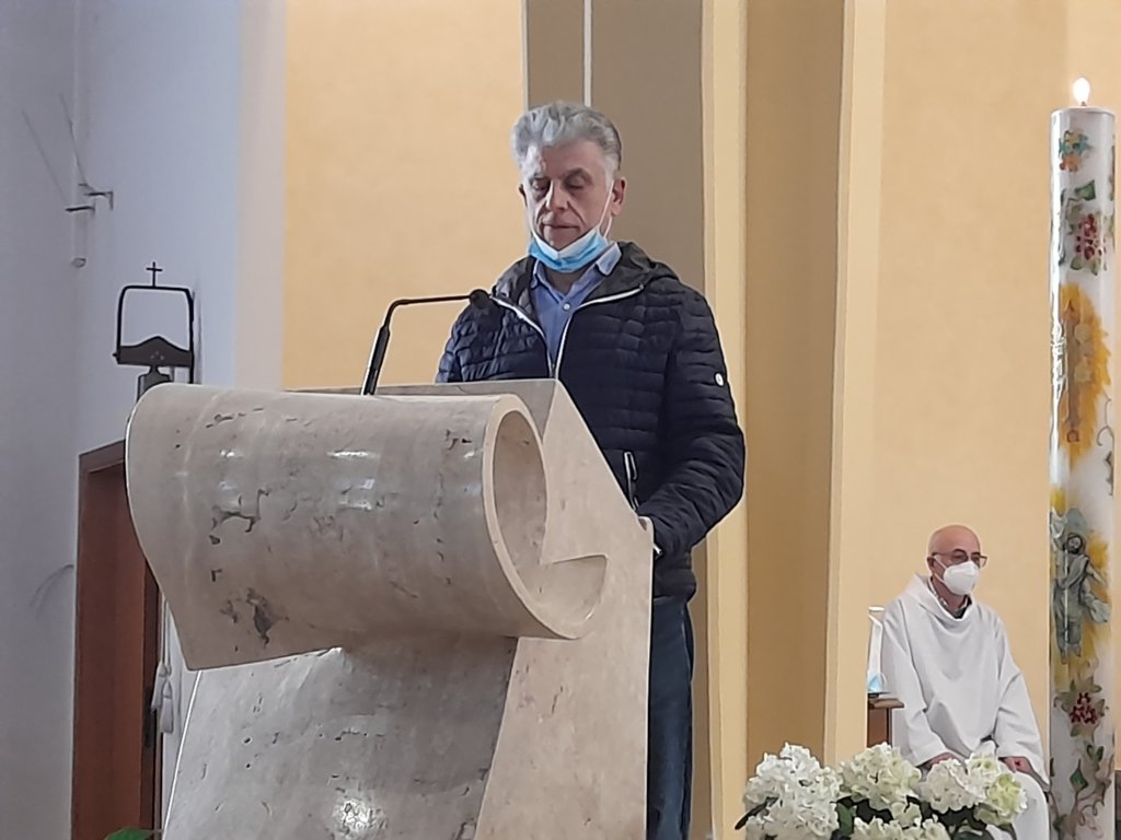 Al termine della celebrazione eucaristica, Alessia Damiani, responsabile del Gruppo dei Catechisti e membro del Consiglio Pastorale, ha salutato e ringraziato il vescovo Bresciani a nome della comunità: “Eccellenza, carissimo Vescovo Carlo, al termine di questa sua gradita visita di quattro giorni alla nostra Comunità San Giacomo della Marca, le vogliamo esprimere un affettuoso ringraziamento a nome di tutte le realtà presenti che vi operano e che ha avuto modo di conoscere: Consiglio Pastorale, Consiglio Parrocchiale Affari Economici, catechisti, coro, Circolo Culturale Sportivo C.S.I., progetto solidale e ministri dell’Eucarestia. Le riportiamo anche una calorosa gratitudine da parte di tutte le realtà commerciali situate intorno alla nostra parrocchia, perché, incontrando i datori di lavoro ed i lavoratori, con le sue parole ha restituito speranza al mondo del lavoro che ha subito il peso della crisi economica. Le rivolgiamo un ringraziamento anche per l’affettuosa e tanto attesa visita ad alcuni anziani della comunità ai quali ha portato la sua Santa Benedizione e parole di conforto di fronte alla fragilità della malattia e dell’età. Eccellenza, lei è entrato nei nostri cuori, come Gesù, il Buon Pastore, che ama le sue pecore a tal punto da non voler perdere nessuna di esse. Gesù dice: ‘Io sono la porta delle pecore: se uno entra attraverso di me, sarà salvato’. Ha avuto cura di tutti noi in questi giorni, dedicandoci del tempo: ci ha ascoltato; ci ha esortato, nei vari gruppi della comunità, ad essere uniti pur nella diversità; ci ha incoraggiato a collaborare con il parroco; ci ha aperto gli occhi facendoci capire che non è importante avere ideali troppo utopici, perché poi fare i conti con la realtà crea un’aspettativa troppo grande e la delusione generale per l’avvilimento e lo scoraggiamento. Ci ha spinti ad essere operatori di speranza e fiducia, di gioia e di amore. Infine ci ha esortato alla preghiera comunitaria, unica fonte per attingere forza, continuità ed unità, per metterci a servizio di Gesù. La comunità San Giacomo della Marca ha vissuto questo momento di Grazia: tutti noi la ricorderemo nelle nostre preghiere e altresì siamo certi che la sua preghiera ci sosterrà sempre, nell’indelebile legame fraterno in Cristo. Grazie Vescovo Carlo per aver scritto una bella pagina della storia della nostra parrocchia, che proprio quest’anno compie 40 anni.”