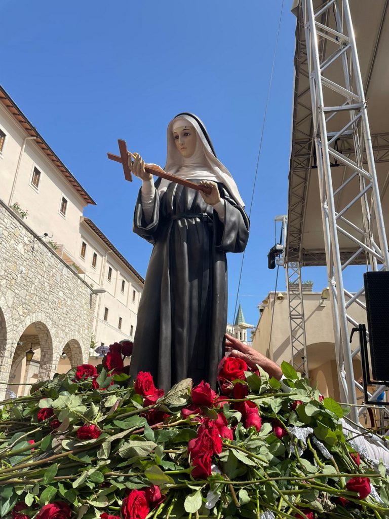 “All’intercessione di questa umile donna di Roccaporena – ha continuato – affido le tante intenzioni del Santo Padre Francesco, che non cessa di far sentire quotidianamente la sua voce affinché si spezzi quanto prima l’inutile spirale di morte in Ucraina. In questa terra di fede e di pace, qual è l’Umbria, auspico che siano ripresi presto i negoziati e si possa giungere finalmente alla tanto desiderata pace. La violenza, ci ricorda la vicenda di questa donna di fede, non risolve mai i conflitti, ma soltanto ne accresce le drammatiche conseguenze”.