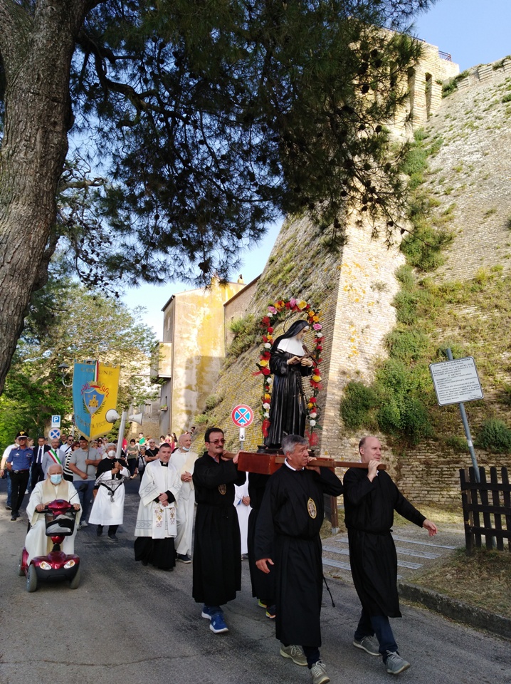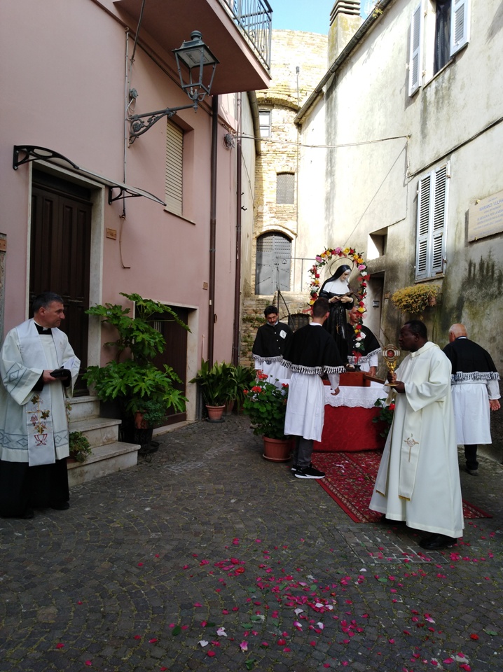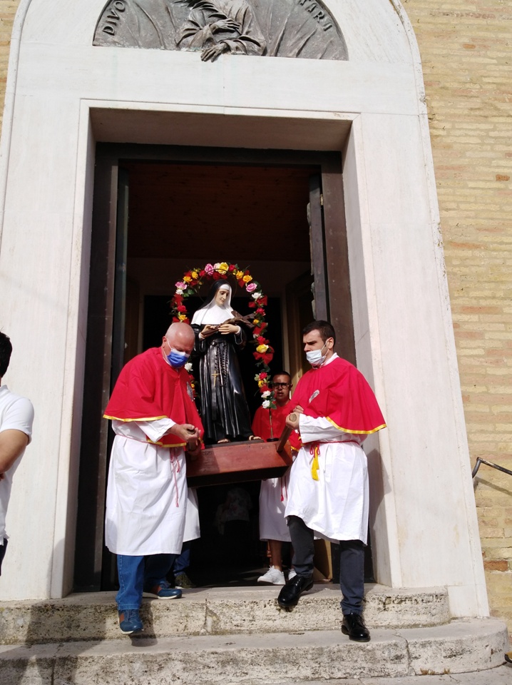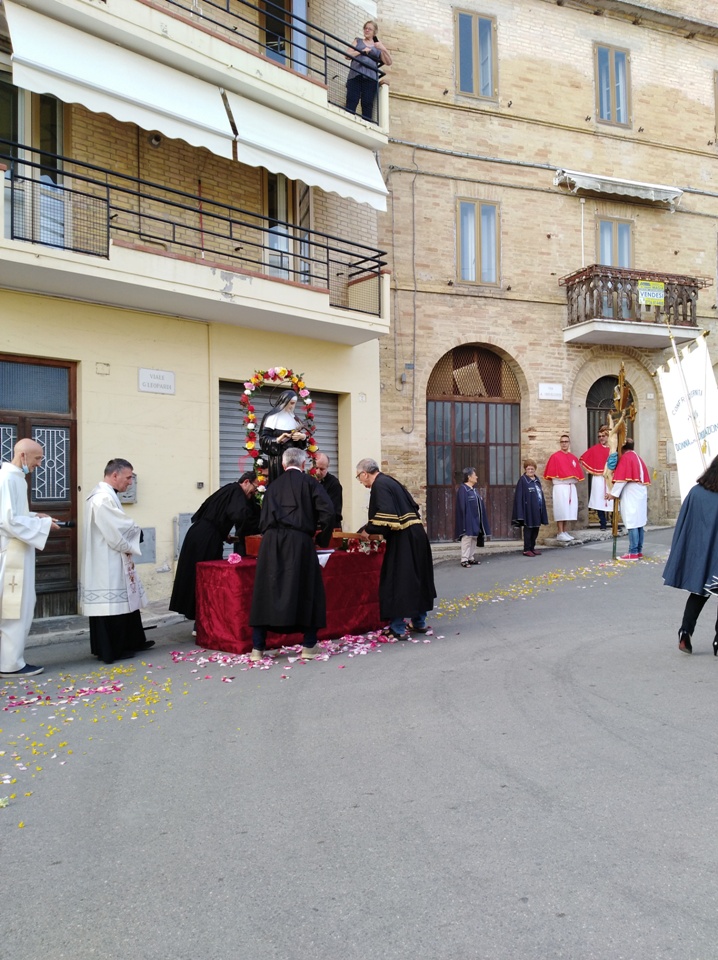 ACQUAVIVA PICENA – Domenica 22 maggio ad Acquaviva Picena è stata onorata santa Rita da Cascia, purtroppo l’emergenza sanitaria ha consentito di organizzare solo un programma religioso. Durante le Messe celebrate al convento sono state benedette le rose e in modo particolare alla Messa delle 10:00 è stata regalata una rosa a tutte le donne che portano il nome di “Rita”.