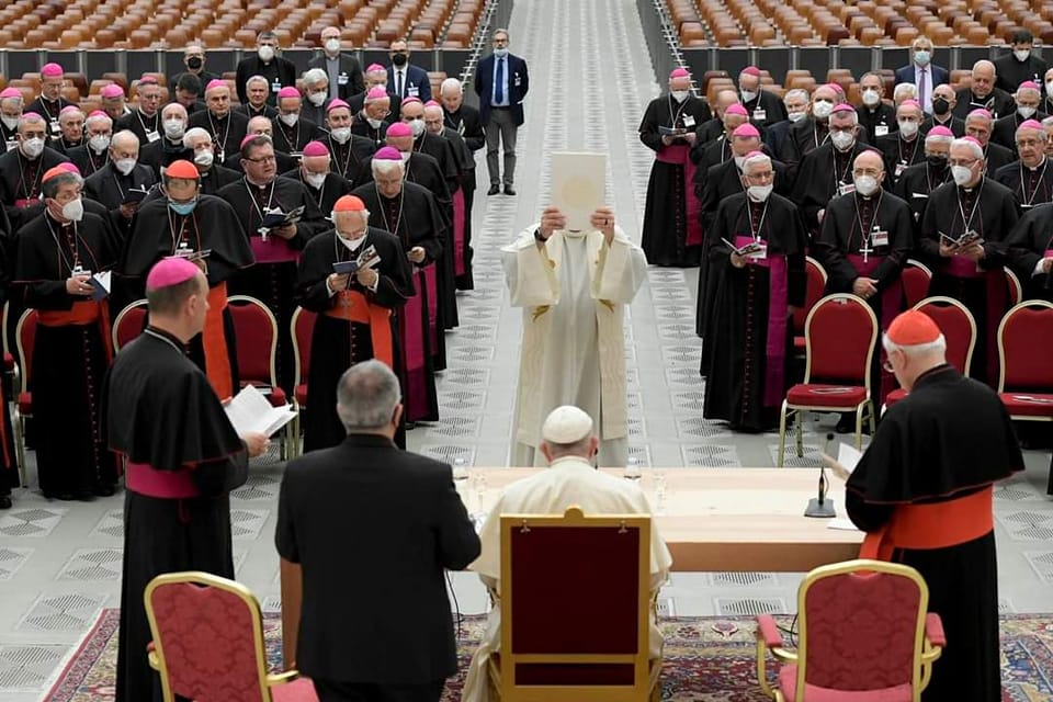 In Aula Paolo VI, il Santo Padre Francesco ha ricevuto in Udienza i Vescovi della Conferenza Episcopale Italiana (CEI) in occasione dell’apertura della 76a Assemblea Generale, che si svolge a Roma, presso l’Hilton Rome Airport, dal 23 al 27 maggio 2022 sul tema: “In ascolto delle narrazioni del Popolo di Dio. Il primo discernimento: quali priorità stanno emergendo per il Cammino sinodale?”.