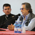 Nel suo intervento il M. Muti ha raccontato il significato dei “viaggi dell’Amicizia “appuntamento fisso annuale. “I nostri viaggi dell’amicizia sono iniziati a Sarajevo in una città devastata e distrutta” ha affermato il M. Muti “Questo viaggio a Loreto ha un significato ancora più profondo: quando noi portiamo i viaggi dell’amicizia normalmente andiamo verso i luoghi sofferenti per trasmettere un messaggio di amore e spiritualità attraverso la musica. Qui è diverso perché questo luogo non è un luogo di guerra, ma di pace, di profonda spiritualità. Spero che questo messaggio possa giungere in tutto il mondo, non solo nei luoghi dove la Madonna è apparsa, ma soprattutto nei luoghi dove le mamme piangono i loro figli, i loro parenti i loro mariti e i loro nipoti. In un mondo di guerra la musica dovrebbe essere uno degli elementi lenitivi. La musica trova le sue grandi espressioni nel concetto di sinfonia che significa cantare, suonare e fare musica insieme. Il concetto di sinfonia trasmesso ai bambini e ai ragazzi porta al concetto della libertà di ognuno che non deve essere cesura o negazione della libertà dell’altro, ma ognuno con le proprie idee deve concorrere al bene comune che è il bene dell’intera società. Questo è il concetto di un’orchestra. Oggi in un mondo così maltrattato e in gravi condizioni ogni goccia può aiutare. Auspico che questo evento sia una volta più di tutte le altre un messaggio di pace che viene da un luogo di pace”.