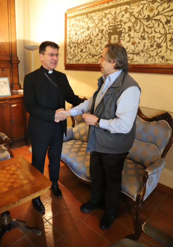 Nella giornata di oggi, 27 maggio, il M. Muti insieme alla consorte e al suo staff, ha fatto visita al Santuario lauretano accompagnato dall’Arcivescovo Mons. Fabio Dal Cin. Nel pomeriggio il M. Muti e l’Arcivescovo hanno presentato l’iniziativa.