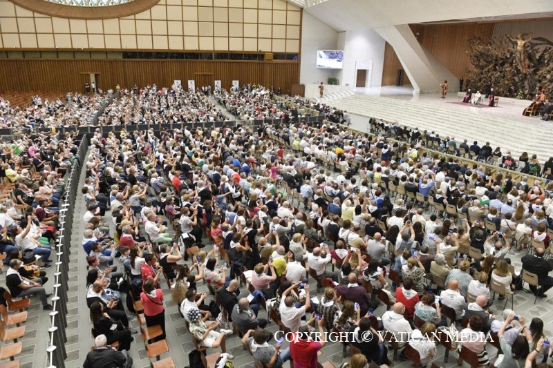 Papa Francesco nell’incontrare tutti i presenti nell’Aula Paolo VI, ha affermato: “Con gioia saluto tutti voi, appartenenti al Movimento dei Cursillos di Cristianità d’Italia, assieme ai vescovi e ai sacerdoti che vi accompagnano, convenuti qui a Roma per la vostra VII Ultreya nazionale.
