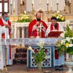 Al termine poi, prima della benedizione finale, Angelo e Cristian, chitarristi del gruppo, avvicinandosi all’altare e ai bambini, hanno fatto loro cantare e animare la bellissima e coinvolgente “In un mondo di Maschere”.