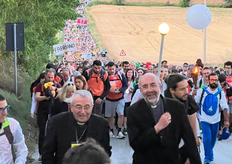 Il cardinal Zuppi, nella sua omelia, e ancor prima in un incontro in sala stampa, ha svolto il tema del Pellegrinaggio senza perdere di vista un solo istante quanto sta accadendo nel mondo, dai cattolici perseguitati in Nigeria alle tante guerre che insanguinano il globo, alle domande esistenziali. Ha chiesto di far nostro il dolore delle vittime e delle madri di tanti giovani morti in guerra. Zuppi ha messo in guardia dallo scetticismo verso la preghiera, che pervade anche tanti cristiani, e dall’indifferenza verso la guerra in cui sta scivolando tanta gente. «Credere nella pace non è velleitario né una ingenuità di anime belle – ha detto – e l’unica strada è quella della preghiera, come indica il Papa. E poi tessere i tanti fili del dialogo perché si arrivi al risultato». Il Cardinale, presidente dei vescovi italiani, ha invitato a camminare per i sentieri della vita senza avere paura, «perché anche nelle valli più oscure si scopre che il pastore è con noi; Lui, l’unica vera sicurezza nella notte del potere delle tenebre, nella notte terribile della guerra». Per camminare bene e capire il nostro cammino sulla terra dobbiamo guardare il cielo. «Guardiamo il cielo e le stelle che illuminano le notti più scure. La luce si vede di più proprio quando il buio è più fitto». E la luce di questa notte in cammino è la Santa Casa di Loreto: «E’ una casa di pace che ci attende perché vogliamo che il mondo intero sia una casa di pace. La beata Vergine Maria come una stella luminosa vi accompagni».