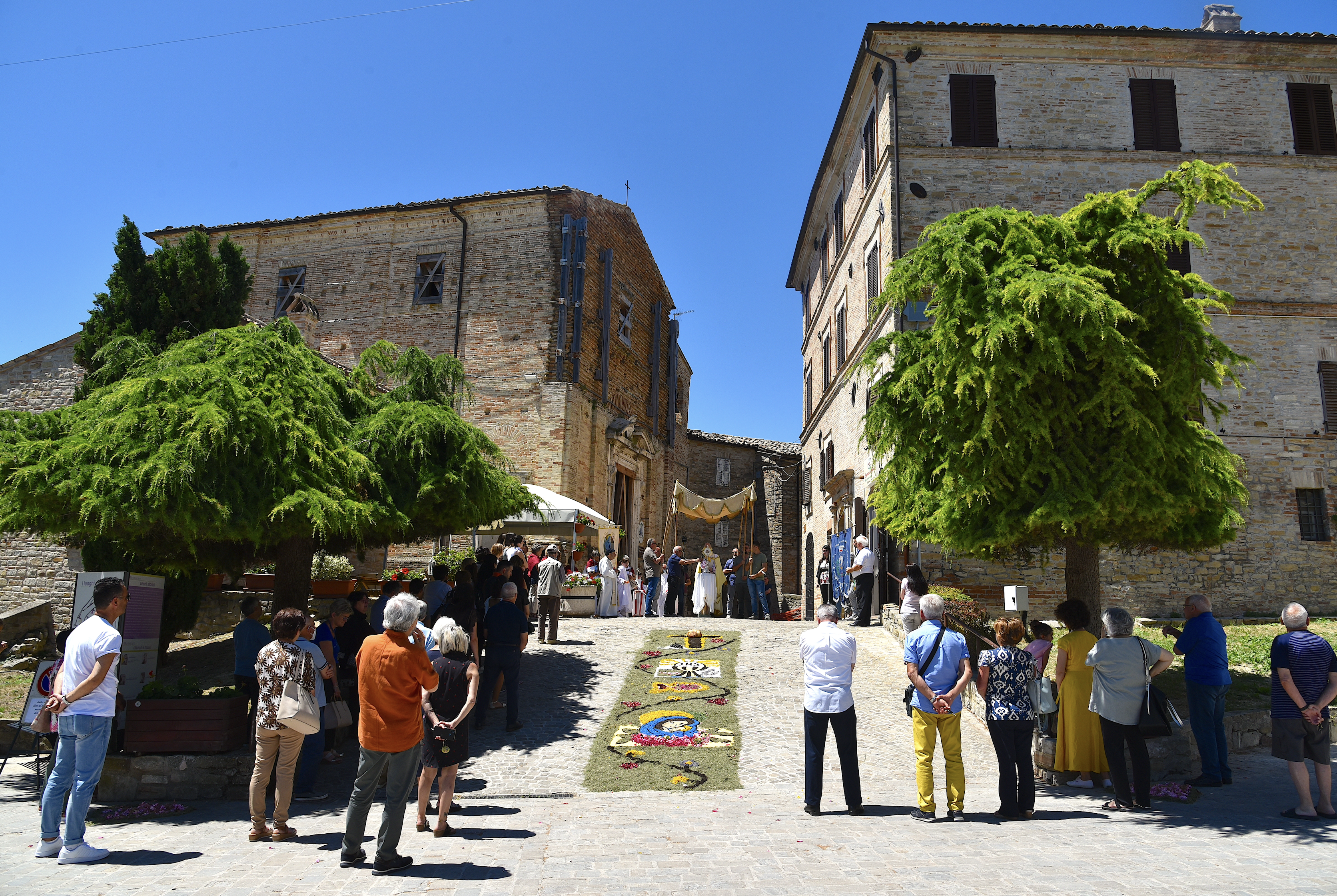 MONTELPARO – Come oramai da secoli la tradizione, per la Giornata del Corpus Domini a Montelparo, si è perpetrata anche oggi 19 giugno 2022! Il Priore della Parrocchia di San Michele Arcangelo, Don Giorgio Carini (con al suo fianco Padre Giovanni Mazzoni), ha officiato la messa del Corpus Domini nella rinnovata Chiesa di San Michele Arcangelo.