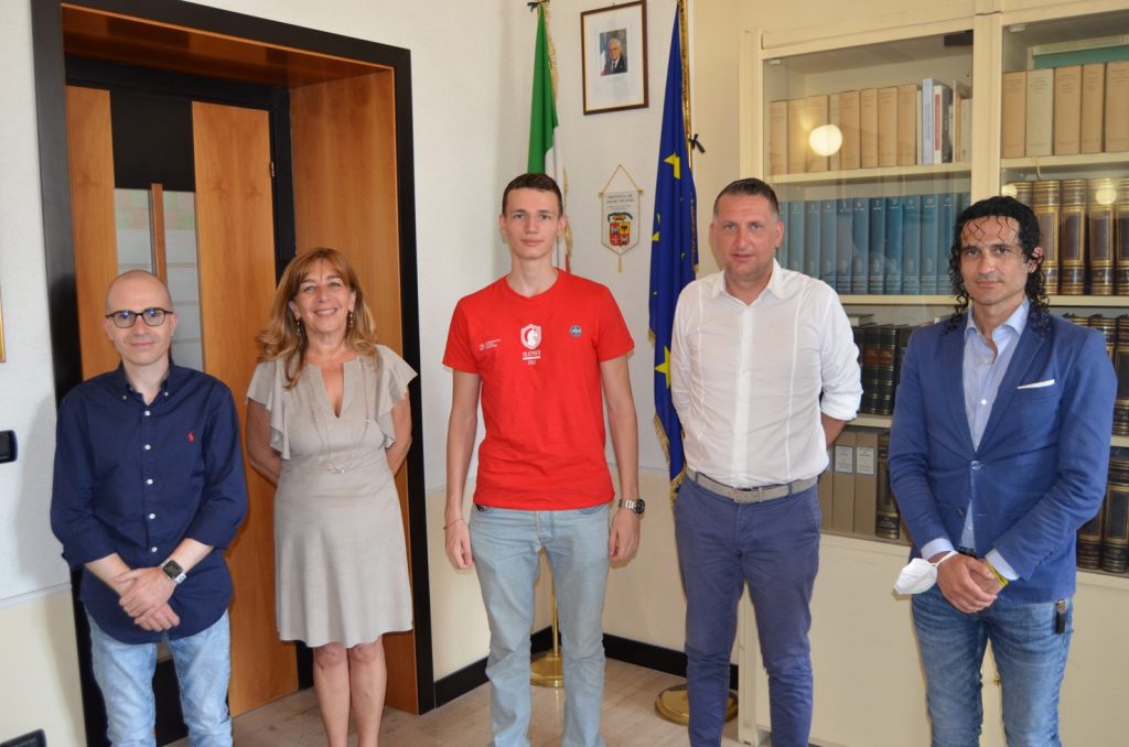 GROTTAMMARE – Il Presidente della Provincia Sergio Loggi ha ricevuto a Palazzo San Filippo Simone Petroni, studente del 5°B INF dell’IIS “Fazzini-Mercantini” di Grottammare che ha conquistato il terzo posto alle finali nazionali delle Olimpiadi di Cybersecurity, garantendosi una delle cinque medaglie d’oro messe in palio. L’allievo, impegnato in questi giorni nell’esame di maturità, era accompagnato dal Consigliere Provinciale con delega all’Istruzione Stefano Novelli, dalla Dirigente Scolastica prof.ssa Sabrina Vallesi e dal docente di informatica prof. Matteo Silveri.