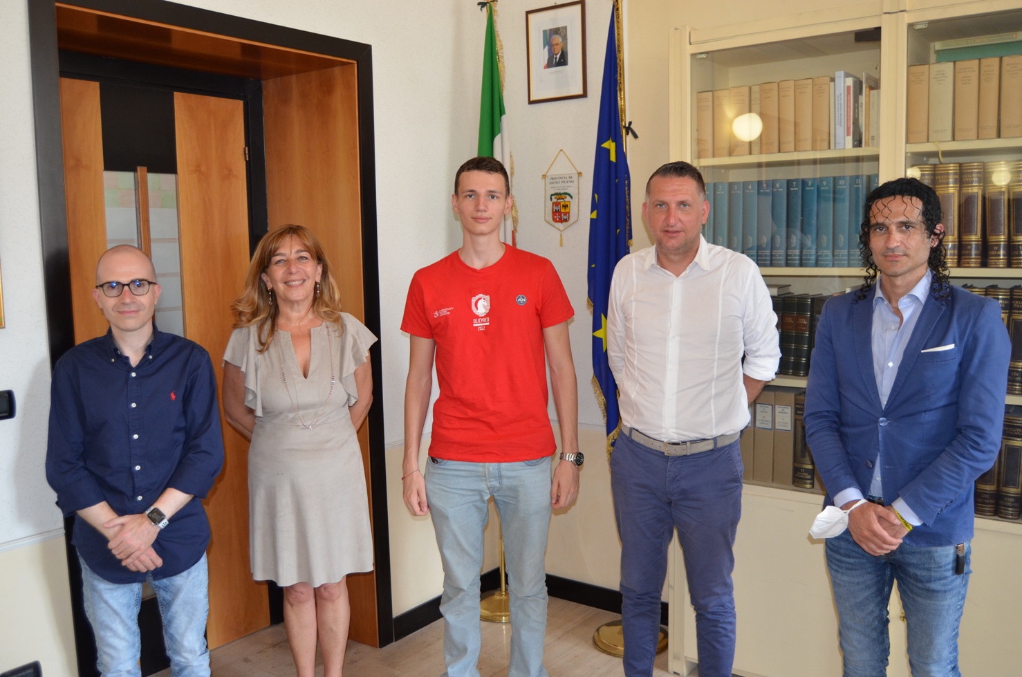 GROTTAMMARE – Il Presidente della Provincia Sergio Loggi ha ricevuto a Palazzo San Filippo Simone Petroni, studente del 5°B INF dell’IIS “Fazzini-Mercantini” di Grottammare che ha conquistato il terzo posto alle finali nazionali delle Olimpiadi di Cybersecurity, garantendosi una delle cinque medaglie d’oro messe in palio. L’allievo, impegnato in questi giorni nell’esame di maturità, era accompagnato dal Consigliere Provinciale con delega all’Istruzione Stefano Novelli, dalla Dirigente Scolastica prof.ssa Sabrina Vallesi e dal docente di informatica prof. Matteo Silveri.