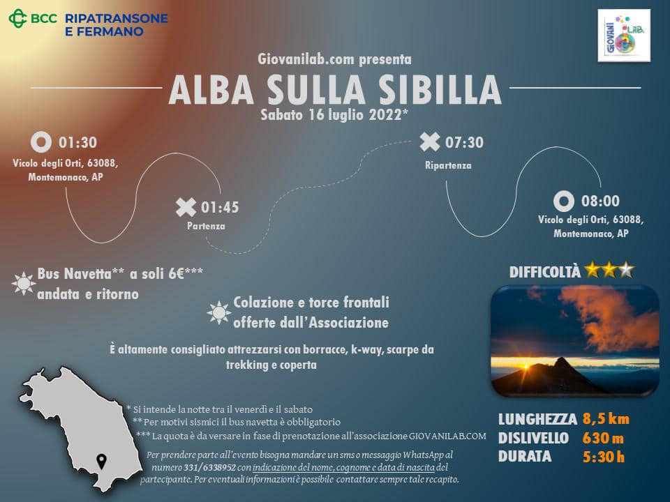 “Il Monte Sibilla – afferma Riccardo Elsini, Presidente di GiovaniLab – è un’attrattiva che richiama turisti da tutto il mondo, perché al di là delle storie sulla presenza dell’antico oracolo, si tratta di una località che presenta uno degli scenari naturalistici più belli d’Europa. Il nostro obiettivo è “vedere l’alba”, col piacere che deriva dal notare come il paesaggio cambi con una luce sempre diversa”.