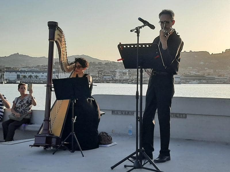 Si punta così a replicare il grande successo di pubblico registrato giovedì scorso quando sono risuonate, sullo sfondo del tramonto sul mare, le note dell’arpa suonata da Valentina Locci e quelle del violino del maestro Paolo Incicco. I brani proposti hanno spaziato dalle classiche armonie di Bach ad alcune delle più indimenticabili colonne sonore di film e sono stati intervallati da testi e poesie lette da Mimma Spinelli.