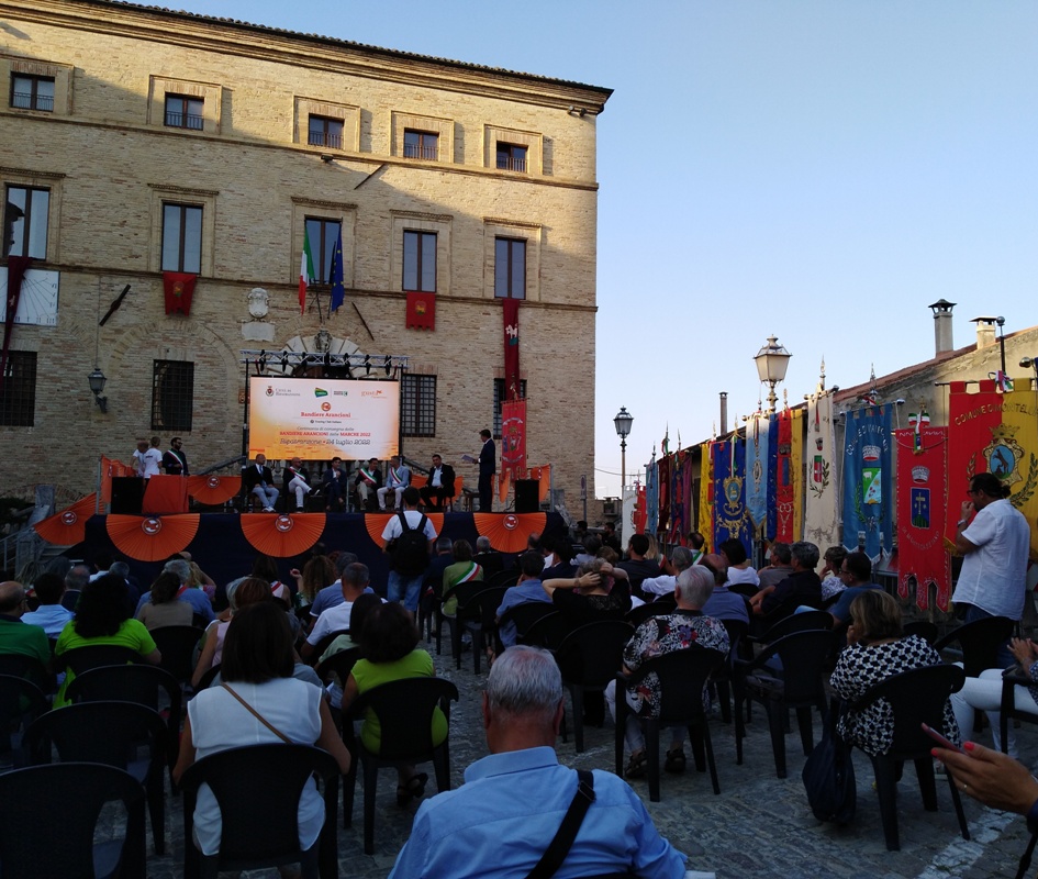 RIPATRANSONE – Ventiquattro Comuni delle Marche sono stati insigniti della Bandiera Arancione: Acquaviva Picena, Amandola, Camerino, Cantiano, Cingoli, Corinaldo, Frontino, Genga, Gradara, Mercatello sul Metauro, Mondavio, Montecassiano, Montelupone, Monterubbiano, Offagna, Ostra, Ripatransone, San Ginesio, Sarnano, Serra San Quirico, Staffolo, Urbisaglia, Valfornace, Visso. La cerimonia di consegna si è tenuta nella città di Ripatransone, domenica 24 luglio.
