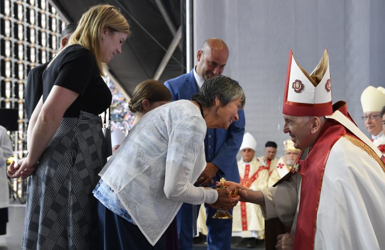 “Oltre che figli di una storia da custodire siamo artigiani di una storia da costruire”. Ne è convinto il Papa, che nell’omelia della Messa presieduta al Commonwealth Stadium di Edmonton ha affermato che “ciascuno può riconoscere di essere quel che è, con le sue luci e le sue ombre, a seconda dell’amore che ha ricevuto o che gli è mancato. Il mistero della vita umana è questo: siamo tutti figli di qualcuno, generati e plasmati da qualcuno, ma diventando adulti siamo anche chiamati a essere generativi, padri, madri e nonni di qualcun altro”. “Guardando alla persona che siamo oggi, che cosa vogliamo fare di noi stessi?”, ha chiesto il Papa alla folla presente: “I nonni da cui proveniamo, gli anziani che hanno sognato, sperato e si sono sacrificati per noi, ci rivolgono un interrogativo fondamentale: che società volete costruire? Abbiamo ricevuto tanto dalle mani di chi ci ha preceduto: che cosa vogliamo lasciare in eredità ai nostri posteri? Una fede viva o all’acqua di rose, una società fondata sul profitto dei singoli o sulla fraternità, un mondo in pace o in guerra, un creato devastato o una casa ancora accogliente?”. “Non dimentichiamo che questo movimento che dà vita va dalle radici ai rami, alle foglie, ai fiori, ai frutti dell’albero”, il monito di Francesco, secondo il quale “la vera tradizione si esprime in questa dimensione verticale: dal basso verso l’alto”. Di qui la necessità di “non cadere nella caricatura della tradizione, che non si muove in una linea verticale – dalle radici ai frutti – ma in una linea orizzontale – avanti/indietro – che ci porta alla cultura dell’indietrismo come rifugio egoistico; e che non fa altro che incasellare il presente e conservarlo nella logica del si è sempre fatto così”.