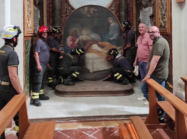 RIPATRANSONE – Sono iniziate le operazioni di messa in sicurezza delle opere custodite ed esposte nella Chiesa Monumentale di San Filippo. Le operazioni, coordinate dal Dott. Moriconi della Soprintendenza ABAP Prov. AP-FM-MC diretta dall’Arch. Giovanni Issini, sono realizzate dalla squadra del comando Provinciale dei Vigili del Fuoco alla presenza dell’Ing. Vannarelli e diretta dell’Ing. Luca Verna – Comandante Provinciale.
