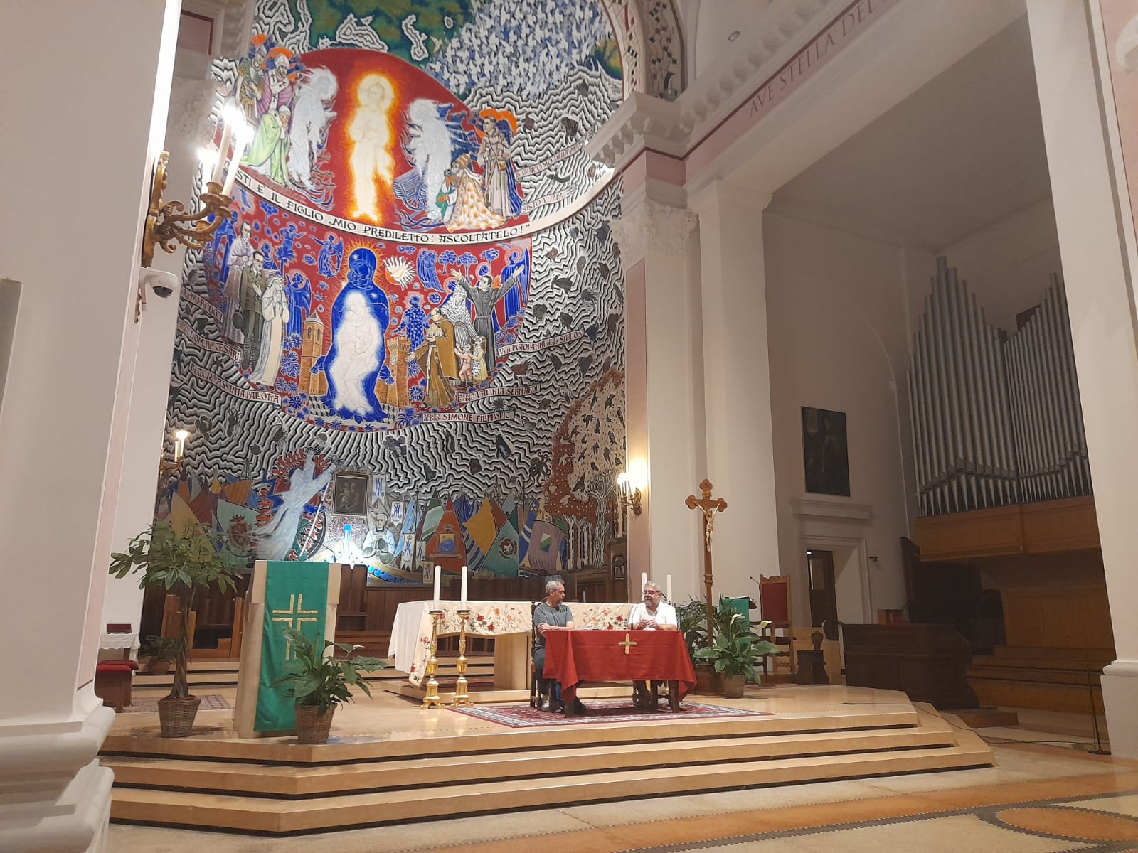 Queste le parole con cui il vicario generale, don Patrizio Spina, ha dato il benvenuto all’illustre ospite: “È un piacere avere nuovamente con noi il dott. Merlini, l’archivista storico di San Benedetto del Tronto. Con lui stasera scopriremo e riscopriremo la bellezza della nostra storia. Una storia di sguardi che si incontrano, si incrociano, si chiamano. Una bellezza di cui tutti abbiamo bisogno.”