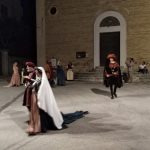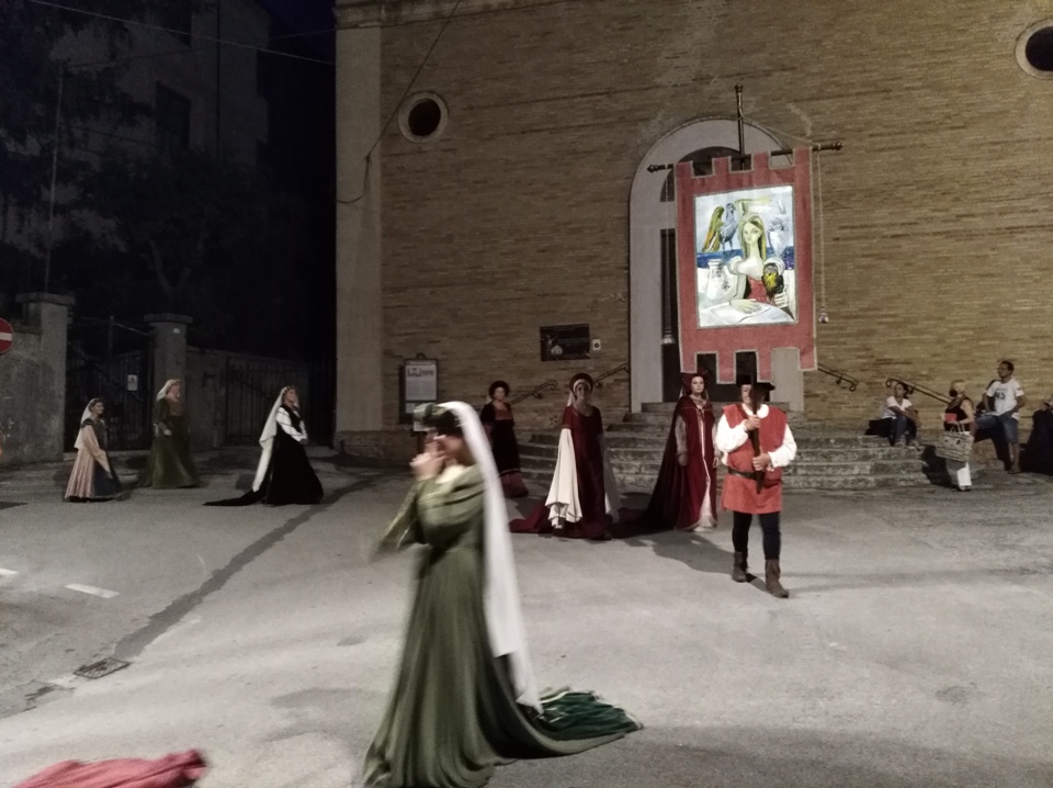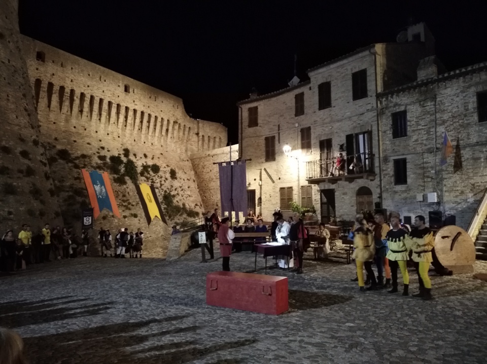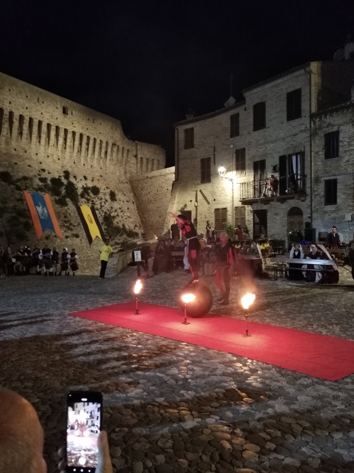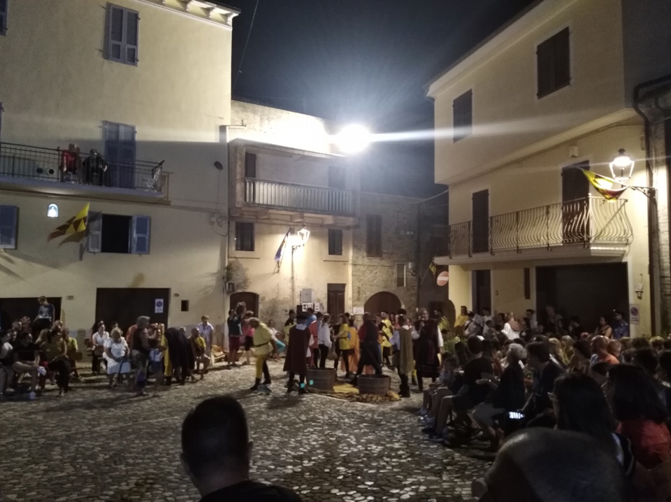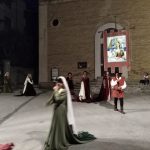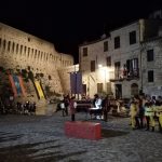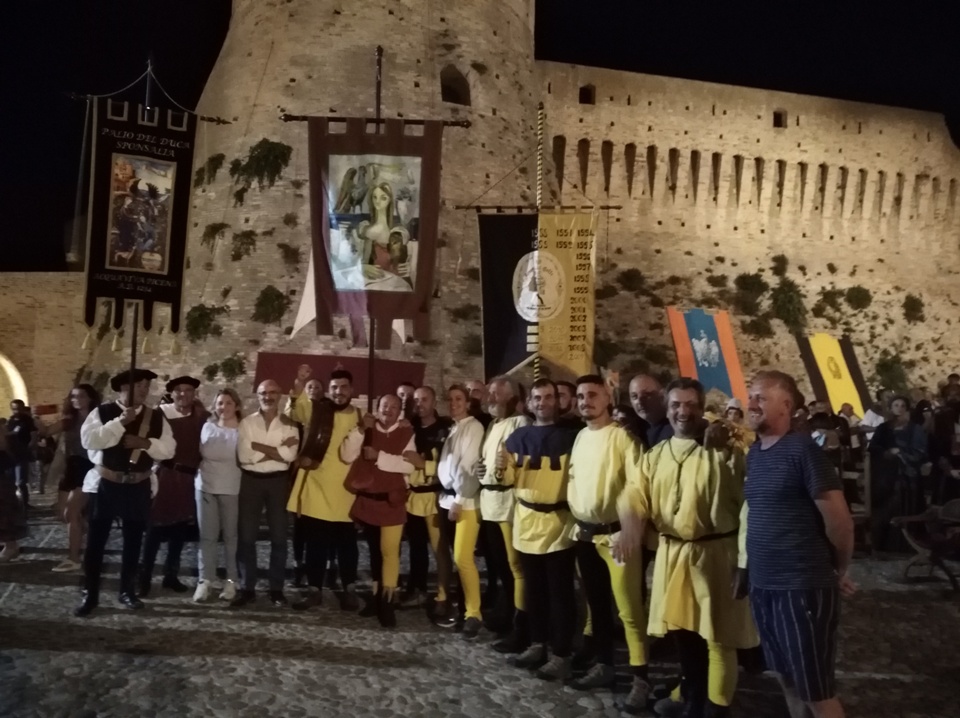 ACQUAVIVA PICENA – Conclusasi domenica 7 agosto con il Banchetto Nuziale Medievale presso la Fortezza di Acquaviva Picena, l’edizione 2022 di “Sponsalia”, Rievocazione Storica organizzata dall’Ente Associazione Palio del Duca dal 1988 e riconosciuta come Rievocazione Storica delle Marche. “Sponsalia” racconta la storia di un matrimonio realmente celebrato nell’anno 1234 tra Forasteria degli Acquaviva e Rinaldo dei Brunforte, due giovani figli di due grandi condottieri tedeschi legati alla famiglia imperiale sveva e in modo particolare a Federico Barbarossa, Federico II e Manfredi. Dopo due anni durante i quali la Rievocazione Storica ha subito delle modifiche a causa della crisi pandemica, ha ripreso a pieno ritmo il suo svolgimento, infatti ha coinvolto quattro giornate: giovedì 4, venerdì 5, sabato 6 e domenica 7 agosto, ottenendo un grande successo di pubblico e molti apprezzamenti. Il giovedì è stata la giornata dedicata al “fidanzamento” dei due giovani Forasteria e Rinaldo, impersonati quest’anno da Benedetta Gaetani e Riccardo Virgili, quindi una serata dove si sono susseguiti diversi spettacoli tipici dell’epoca, serata iniziata con il corteggio storico lungo le vie del paese e conclusasi nella Piazza del Forte, ai piedi del Mastio. Venerdì è stata dedicata al “matrimonio”, dopo la lettura del contratto matrimoniale si è dato il via ai giochi storici tra i due rioni, Aquila e Civetta, ne è uscito vincitore il rione Civetta dai colori giallo – nero, aggiudicandosi così il Palio istoriato da Tavanxhiu, ma un applauso va anche al rione Aquila dai colori azzurro – arancio per aver dimostrato anche’essi un’ottima preparazione. Sabato è stato dedicato ai bambini, con spettacoli per i più piccoli: “I ludi di Sponsalia”. Domenica 7 agosto il Banchetto Nuziale Medievale all’interno della Fortezza ha concluso la XXXV edizione, il Banchetto è un evento unico nel Piceno. Un ringraziamento al Palio dei Castelli di San Severino Marche e al Palio del Serafino di Sarnano per la partecipazione. Un ringraziamento al sindaco Infriccioli e a tutta l’Amm.ne Com.le, a tutti i collaboratori e a tutti gli artisti, per la buona riuscita della Rievocazione. L’Ente Associazione Palio del Duca presidente cav. Nello Gaetani, iscritta al RUNTS e all’APS, da’ l’appuntamento al prossimo anno.