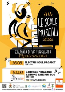 RIPATRANSONE – Il Centro Storico di Ripatransone e la sua Scalinata di Via Margherita tornano a fare da sfondo a “Le Scale Musicali”, la rassegna dedicata alla musica dal vivo in uno degli scenari più suggestivi del Belvedere del Piceno. Dopo la serata di ieri, il prossimo appuntamento in programma è per domenica 21 agosto.