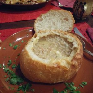 ZUPPA DI FARRO CON FUNGHI PORCINI IN CIOTOLA DI PANE