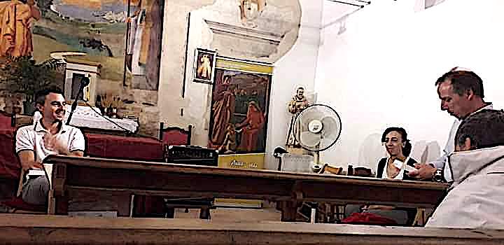 Ospitati dalla parrocchia nella Chiesa dei Santi Pietro e Silvestro di Montelparo, causa maltempo, Luca ha trasportato i presenti, con molta emozione, all’epoca in cui i nostri nonni si sono trovati a compiere delle scelte di coraggio, spesso drammatiche, il cui esito è stato, per molti nostri corregionali, il sacrificio stesso della loro vita.