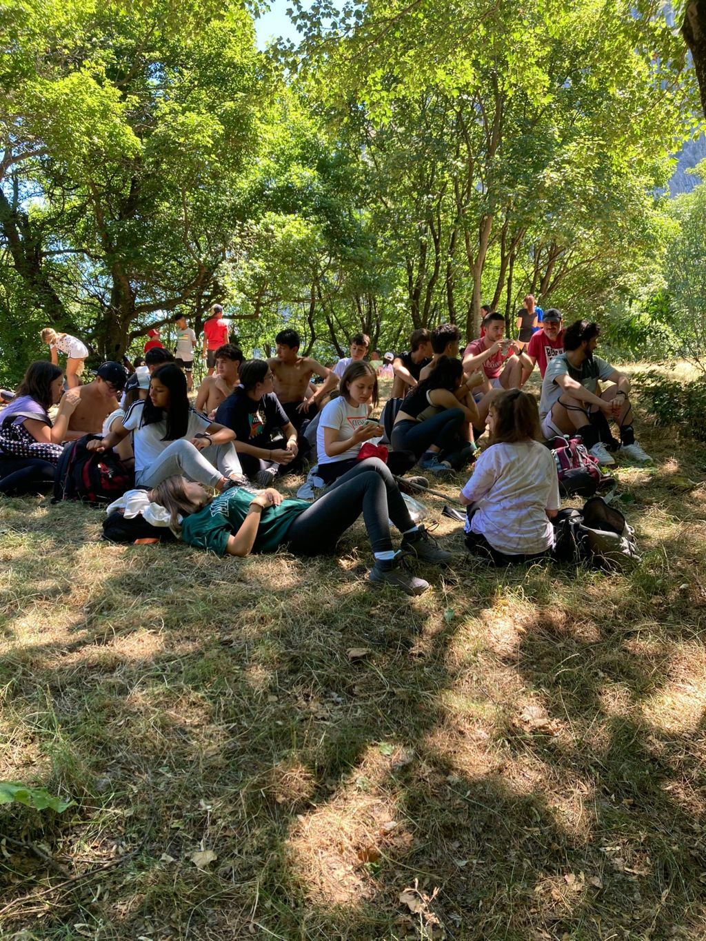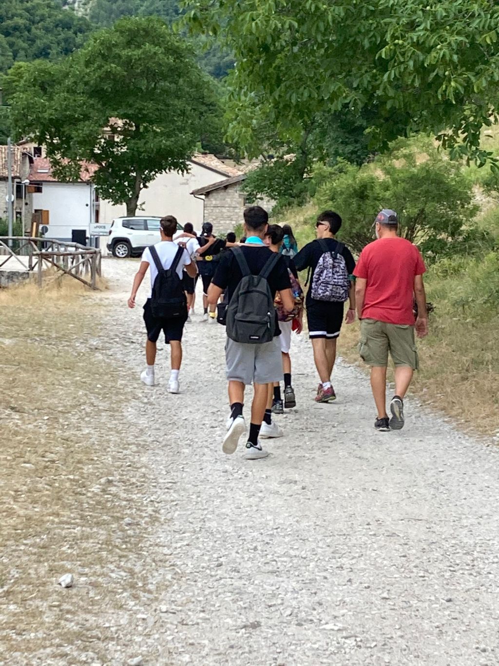 “Il campo scuola non è una novità per la nostra comunità – dichiara Elisa – ma purtroppo, a causa della pandemia, l’ultima esperienza in merito risaliva al 2019. Quest’anno il nostro parroco, don Alfonso Rosati, ha voluto riproporlo come momento di ripartenza, sia per i partecipanti sia per gli animatori. Mentre in passato, infatti, l’esperienza era riservata ai ragazzi dell’ultimo anno della primaria e dei primi due anni della secondaria, quest’anno, invece, lo abbiamo dedicata ai ragazzi più grandi che hanno frequentato o l’ultimo anno della scuola medie o il primo anno degli istituti superiori. Dopo aver ricevuto il sacramento della Cresima lo scorso maggio, il parroco ha convocato i ragazzi appena cresimati ed ha chiesto loro in che maniera volessero impegnarsi in parrocchia, così sono stati coinvolti prima nell’oratorio estivo, poi anche nel campo scuola. Abbiamo deciso in questa maniera per due motivi: prima di tutto perché, a causa delle restrizioni anti-Covid, molti cresimati non avevano vissuto quest’esperienza e morivano dalla voglia di farla; poi anche perché abbiamo voluto formare alcuni ragazzi che, nei prossimi anni, fossero in grado di fare da animatori ai più piccoli, ricreando quella continuità che con il Covid era venuta meno. La scelta, a quanto pare, è stata azzeccata: siamo riusciti a coinvolgere in tutto 18 ragazzi con i quali abbiamo trascorso la settimana dall’11 al 16 luglio a Montemonaco, presso la Casa per ferie San Giorgio all’Isola nel Comune di Montemonaco sul lago di Gerosa. Don Alfonso ha chiesto a me, a mio marito Pietro Masullo e a Davide Di Salvatore di accompagnare il gruppo, visto che già conoscevamo bene i giovani partecipanti, in quanto li avevamo preparati, insieme a lui, al sacramento della Cresima. Ma, oltre a noi, sono state coinvolte anche altre persone della comunità, ciascuno a suo modo. Tanto per fare un esempio, prima della partenza, alcune signore, che fanno volontariato alla Caritas parrocchiale, ci hanno donato dei ciambelloni preparati da loro da poter utilizzare per la colazione. Inoltre anche molti altri fedeli ci hanno assicurato le loro preghiere, mentre noi eravamo via, quindi, in qualche modo, tutta la comunità ha partecipato a questo progetto.”