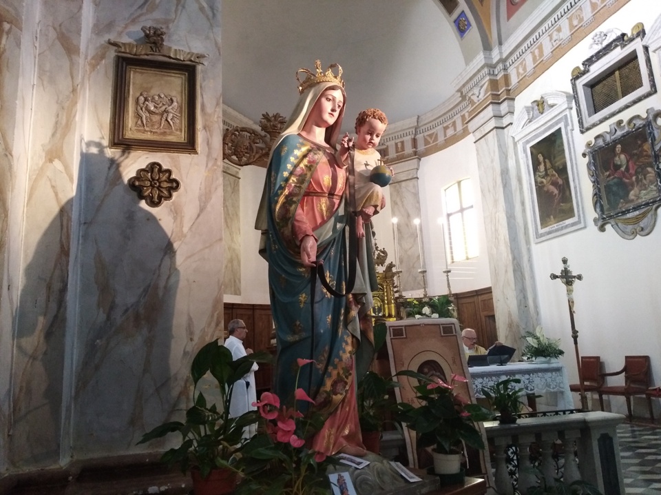 ACQUAVIVA PICENA – Ad Acquaviva Picena domenica 4 settembre è stata onorata la Madonna della Consolazione, conosciuta anche come Madonna della Cintura. In modo particolare questa festa è legata al convento degli Agostiniani di Acquaviva Picena che la onorano sempre la domenica dopo la festa di sant’Agostino; la storia della Madonna della Cintura si lega alla figura di santa Monica, mamma di sant’Agostino: si racconta che santa Monica si rivolse alla Vergine chiedendo quale abito mettere dopo la scomparsa del marito, Maria le apparve con le vesti indossate alla morte del Figlio Gesù: una lunga tunica nera e un manto dello stesso colore, un velo bianco sul capo e la cintura sui fianchi.