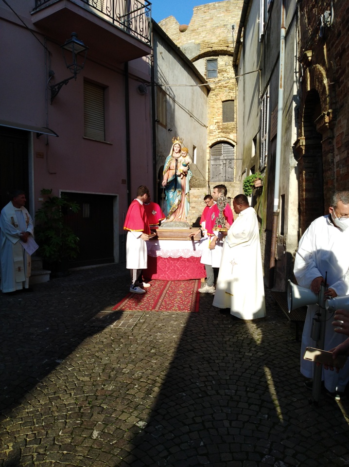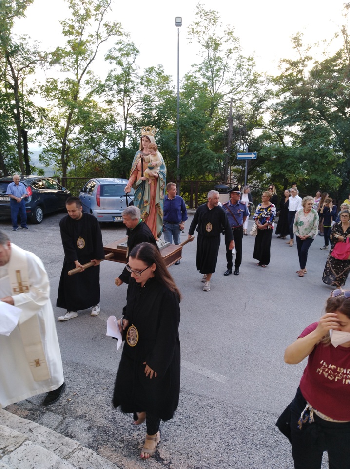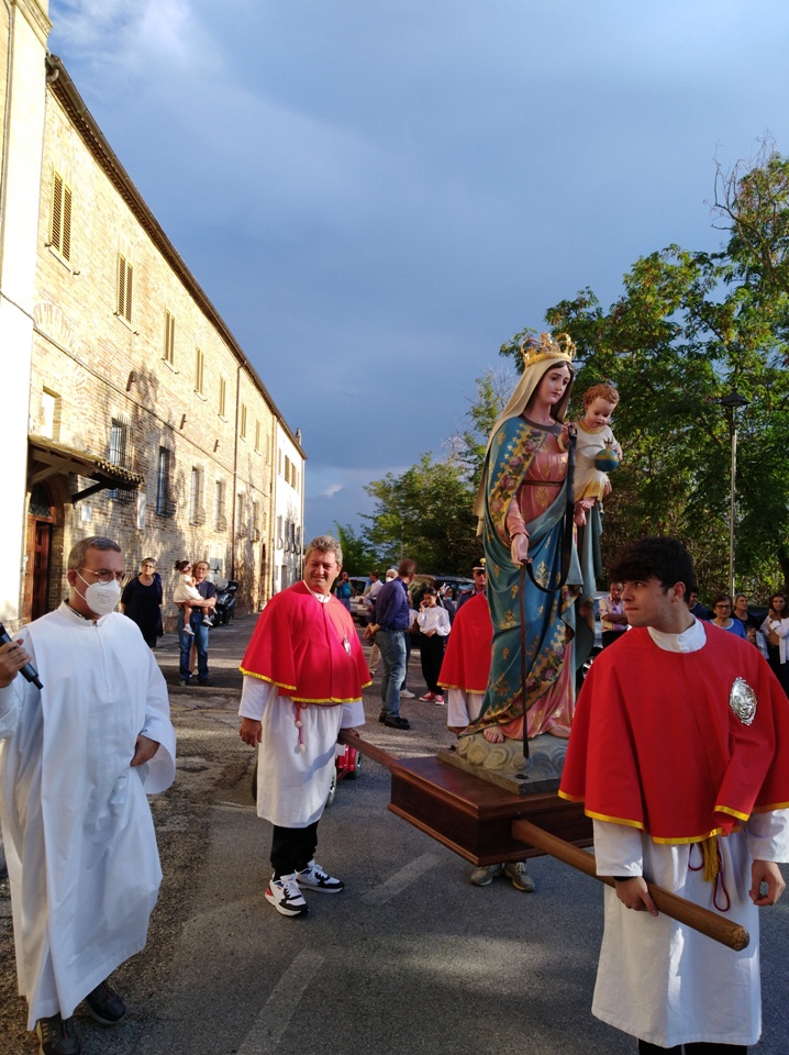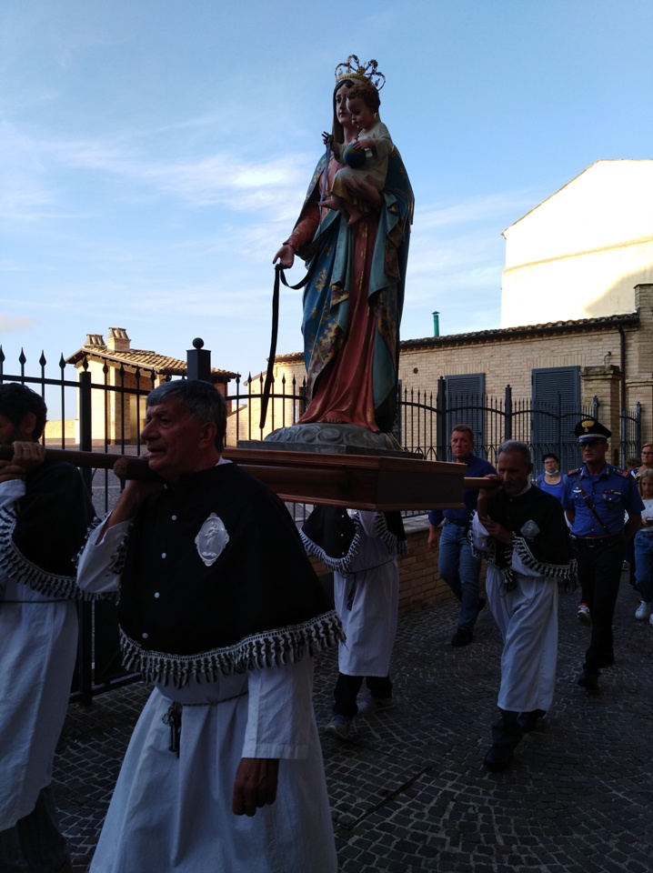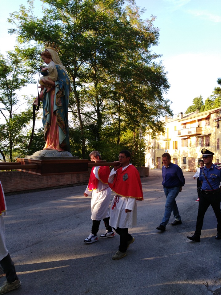 Per avvicinarsi al Signore la preghiera è molto importante, il demonio cerca di distrarci in ogni modo, ci fa vedere che ci sono tante cose da fare e tutte indispensabili per non farci pregare. Non facciamoci ingannare. Preghiamo regolarmente, un cristiano che non prega è come un soldato che abbassa le armi davanti al nemico. Affidiamoci alla Madonna, oggi celebriamo la Madonna di Consolazione, lei ci consola, ci consola quando sentiamo tutto il peso della croce, la tristezza e la durezza di abbandonare tutto per il Signore. In questa lotta tra il bene e il male, tra l’amore per noi stessi e l’amore per Dio la nostra Mamma del cielo ci prenderà per mano e ci consolerà e ci guiderà, ci darà sicuramente la forza di combattere il male e anche il nostro egoismo”. Dopo la Messa delle 17:00 si è snodata la processione per le vie del paese. Alla processione hanno partecipato anche il sindaco di Acquaviva Picena Infriccioli e il Maresciallo dei Carabinieri Galasso.
