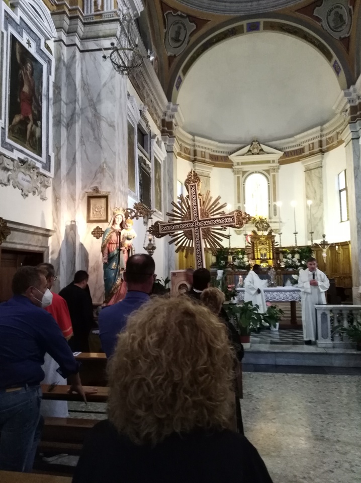 Padre Giuliano Del Medico nell’omelia ha detto: “Vi è una parola chiave nel Vangelo di questa domenica: riflettere. Nei paragoni che Gesù offre alla nostra meditazione ci ricorda che colui che vuole costruire una torre deve riflettere su quella che sarà la spesa, così come un re che va in guerra contro un altro re dovrà prima valutare con attenzione i mezzi di cui dispone, allo stesso modo deve fare pure il cristiano: egli nel seguire Gesù dovrà avere a disposizione quelle virtù che gli consentiranno di essere un fedele discepolo fino alla fine, in modo da non rinnegare mai il Signore. Di quale virtù si tratta? Ce lo fa comprendere Gesù nel brano del Vangelo: quella virtù che ci fa distaccare da tutti i nostri averi. Dobbiamo rinunciare a tutti i nostri averi, non solo le cose materiali, ma anche i nostri desideri, i nostri vizi, le nostre imperfezioni. Non significa che dobbiamo rinunciare a tutto come ad esempio ha fatto san Francesco d’Assisi, ma di essere attaccati solo al Signore, i beni di questo mondo devono essere usati con cuore libero senza diventare schiavi delle nostre passioni o dei nostri averi. Per arrivare a questo distacco bisogna amare Dio con tutto il nostro cuore, non c’è via di mezzo, o si ama Dio o il nostro cuore si attaccherà inevitabilmente ai beni di questo mondo. Quanto più si ama, tanto più ci si libera da questi legami. L’Amore farà sì che metteremo Dio al primo posto nella nostra vita, al di sopra degli affetti più cari e al di sopra della nostra stessa vita. I martiri non hanno avuto paura di affrontare il martirio perché amavano Dio più del loro corpo, come ad esempio san Lorenzo. Abbiamo noi questo bene così grande dell’amore di Dio? Il nostro amore per il Signore è spesso troppo piccolo. A volte non amiamo per niente il Signore e a Lui preferiamo il peccato. Dio dovrebbe essere amato sopra ogni cosa e invece lo mettiamo troppo spesso all’ultimo posto.