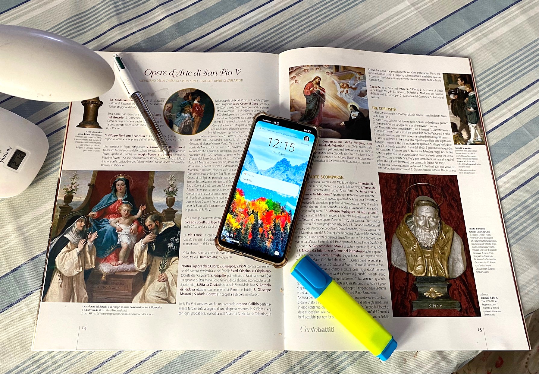 In foto il libro “Cento Battiti” aperto sul capitolo delle opere d’arte in San Pio V.