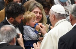 Dopo aver dato inizio all’udienza con il segno della croce, il Papa ha visto avvicinarci due bambini che gli hanno consegnato una lettera.