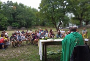 “I campi scuola nella nostra comunità vengono organizzati da tempo immemore – raccontano Roberta e Sandra – ma quest’anno per noi hanno assunto un significato molto diverso, più profondo: è stato un segno di rinascita della parrocchia. Il parroco ha fortemente voluto fare quest’esperienza anche con i bambini un po’ più piccoli, quelli che quest’anno inizieranno il cammino per ricevere il Sacramento della Prima Comunione e che, a causa della pandemia, non avevano mai frequentato un gruppo parrocchiale né ovviamente seguito il Catechismo. Si tratta di bambini che lo scorso anno hanno frequentato il terzo anno della scuola primaria e che si apprestano oggi ad iniziare il quarto anno. Siamo riusciti a coinvolgere circa 20 bambini che sono stati seguiti da noi con l’aiuto di una mamma, Simona, che gentilmente si è prestata ad occuparsi della cucina, e di due giovanissimi animatori adolescenti, Asia ed Augusto, che ci hanno supportato sia nelle attività ludiche sia nella gestione pratica dei bisogni dei bambini, come, ad esempio, mettere pace durante le discussioni per le partite a calcetto oppure asciugare i capelli e, a volte, anche le lacrime!”