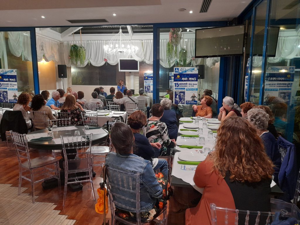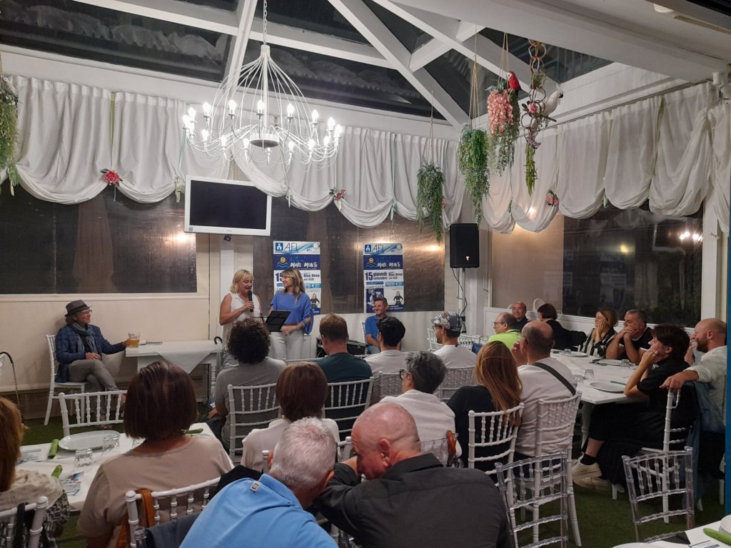 GROTTAMMARE – Una serata di cultura, tra sacro e profano, alla scoperta dei miti e delle leggende sulle fate dei monti Sibillini, in una cornice suggestiva di condivisione e convivialità: è questa la bella fotografia della serata che si è svolta giovedì 15 settembre 2022, presso la pizzeria Blu Deep di Grottammare, dalle ore 19:00 alle ore 23:30. L’evento, che è il primo di tre appuntamenti organizzati e finanziati, nell’ambito del Festival “Mare e Monti”, dall’Associazione Famiglia Impresa (A.F.I.), è patrocinato e cofinanziato anche della Regione Marche. La serata, condotta magistralmente dalla speaker radiofonica e conduttrice tv Antonella Ciocca, ha registrato la presenza dell’illustre filosofo Cesare Catà che ha presentato lo spettacolo dal titolo “La Fata Sibilla e il Guerrin Meschino”, da lui scritto ed interpretato. Tra gli oltre 50 ospiti intervenuti, erano presenti anche Anna Amici, presidente dell’AFI, e Jessica Marcozzi, consigliera della Regione Marche.