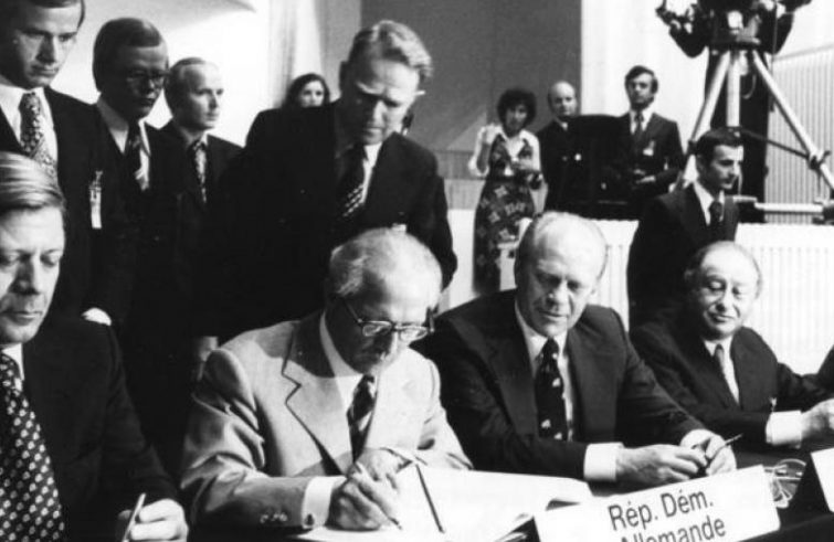 Leader furono i capi di Stato e di governo che il 1° agosto del 1975 firmando l’Atto finale di Helsinki, pur consapevoli che gli effetti di quel documento non sarebbero stati immediati e obbliganti, ma coscienti di aver posto un pilastro alla fine di una guerra, non solo “fredda”, che costernava i popoli europei. Leader consapevoli altresì di mettere in discussione sistemi e visioni del vivere e governare tra loro contrapposte, ognuno delle quali pretendeva di essere la migliore.