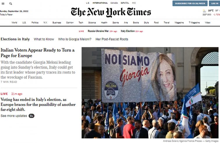 Per il New York Times “la preoccupazione più pervasiva non è che il partito di Giorgia Meloni sia pronto a ripristinare fascismo in Italia e , qualunque cosa esso significhi, ma che un governo da lei guidato, se fermo su determinati principi, possa trasformare l’Italia in una “autocrazia elettorale”, sulla falsariga dell’Ungheria di Viktor Orban”.