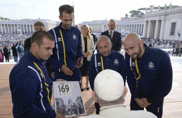 Papa Francesco ieri mattina ha applaudito e incoraggiato i quattro ciclisti di Athletica Vaticana, la sua squadra, che domenica scorsa in Australia hanno partecipato, per la prima volta, al campionato del mondo. In particolare, durante l’udienza generale in piazza San Pietro, Francesco si è complimentato con Rien Schuurhuis che nella corsa mondiale è anche andato in fuga suscitando un caloroso tifo lungo la strada.